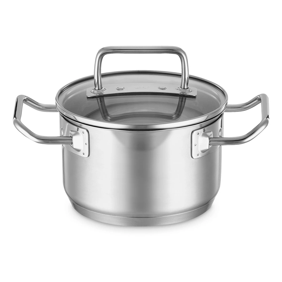 Коллекция Expertiso от немецкого бренда Roesle – надежная кухонная посуда в уточненном дизайне. Изделия серии изготовлены из нержавеющей стали – безопасного и гигиеничного материала, устойчивого к запахам. Дно толщиной 5 мм, выполненное в виде сэндвича с алюминиевым сердечником, равномерно распределяет тепло. Наличие мерной шкалы облегчает приготовление. Специальный носик дает возможность аккуратно сливать жидкость. При закрытой крышке он выполняет функцию пароотвода. Крышка из закаленного стекла идеально прилегает к кастрюле и позволяет контролировать процесс. Монолитные ручки с элегантным изгибом и великолепной эргономикой обеспечивают надежный и удобный захват. Можно использовать на всех типах плит, включая индукционную.