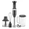 Погружной блендер и его аксессуары открывают множество возможностей на кухне. Быстро и без труда смешивайте, измельчайте, делайте пюре, взбивайте в пену или мусс. Готовьте самые разные блюда: от супов и смузи до детского питания и соусов. Вам не составит труда приготовить идеальный соус песто, густой соус сальса или свежий майонез. В комплект погружного блендера входит литровый стакан без бисфенола-А с крышкой и ручкой, который можно использовать как для измерения количества ингредиентов и приготовления, так и подачи и хранения, чтобы не пачкать другую посуду. В комплекте также идет специальная съемная насадка на погружную часть блендера, которая защитит ваши кастрюли и сковороды от царапин. Взбивайте сливки или эмульгируйте прованскую заправку с помощью венчика в комплекте или измельчайте орехи, лук, чеснок, зелень и многое другое при помощи удобной насадки-измельчителя. С триггерным регулятором скорости вы добьетесь нужного результата даже одной рукой. Этот погружной блендер доступен в нескольких стильных расцветках.