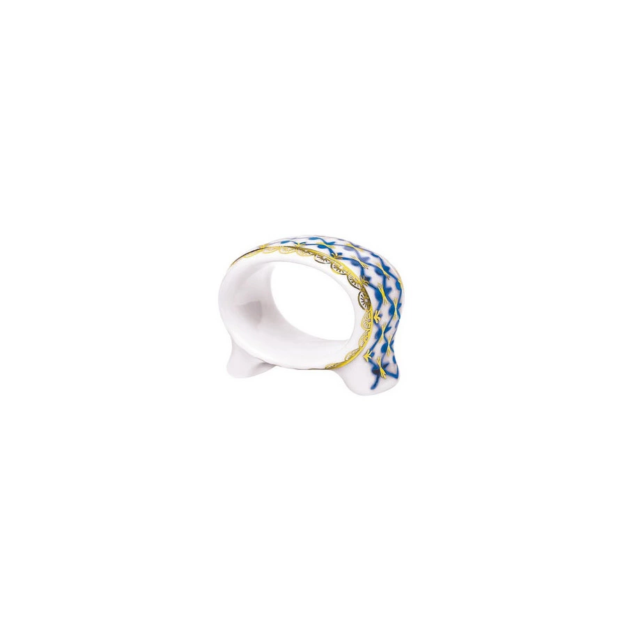 Кольцо для салфеток изготовлено на Императорском фарфоровом заводе из твёрдого фарфора. Для декорирования используется подглазурная деколь, роспись золотом. Автор рисунка — Анна Яцкевич, автор формы — Анна Лепорская.
