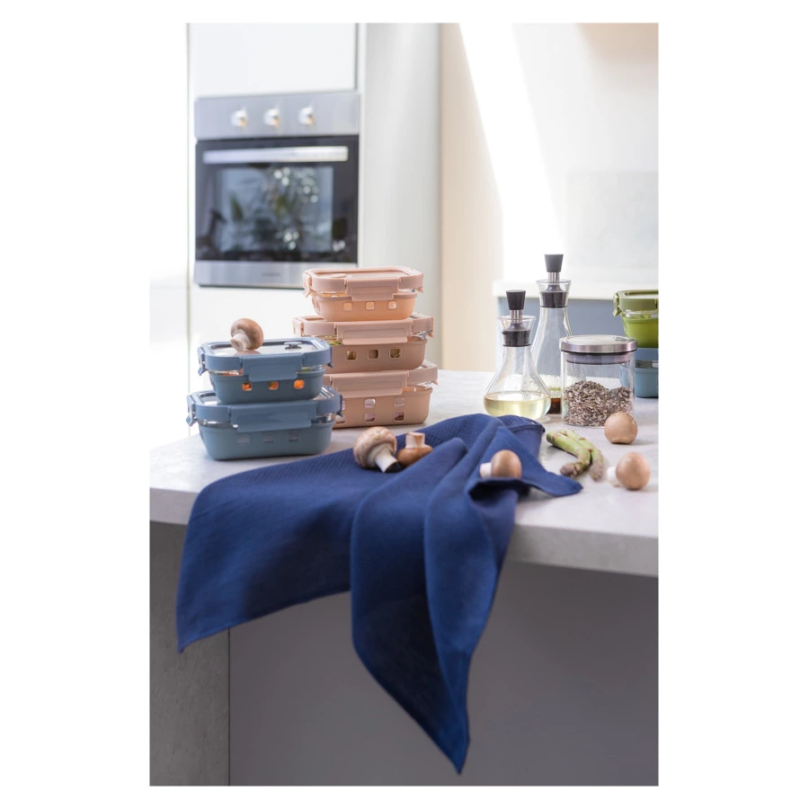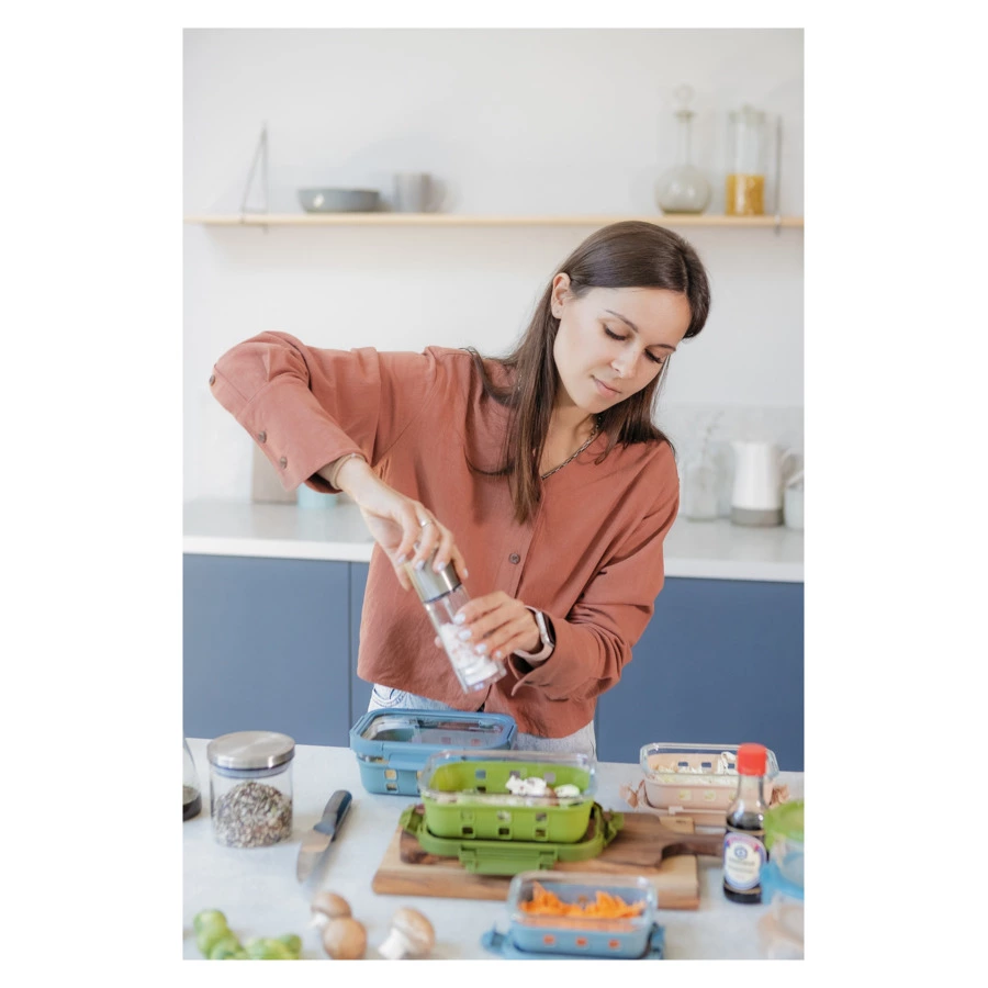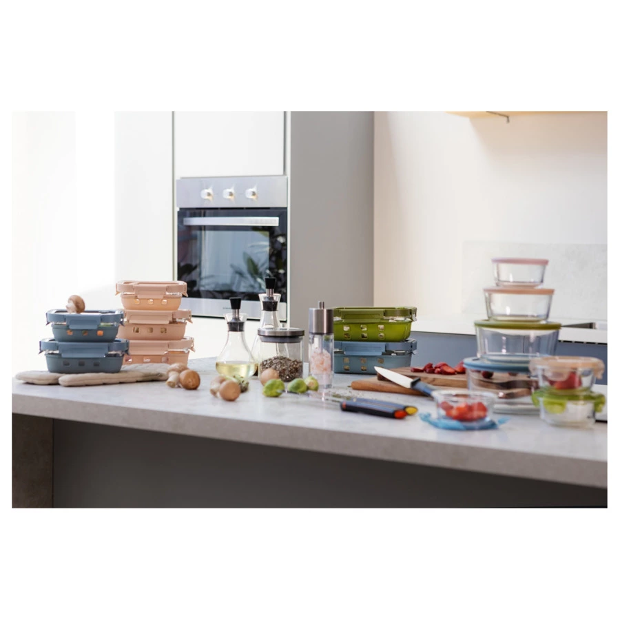 Контейнер стеклянный в чехле из силикона отлично подходит для хранения, запекания и транспортировки продуктов, в том числе готовых блюд. Емкость из боросиликатного стекла не впитывает запахи и загрязнения, легко моется. Крышка с надежными пластиковыми замками на каждой стороне обеспечивает плотное закрывание. Материалы не содержат бисфенол-А и являются абсолютно безопасными для здоровья. Наличие специального вентиляционного отверстия позволяет выпустить лишний воздух или горячий пар, что повышает герметичность и улучшает условия хранения продуктов. Силиконовый чехол предотвращает скольжение, защищает руки от случайных ожогов во время переноски горячих блюд и легко снимается для тщательной очистки контейнера.
