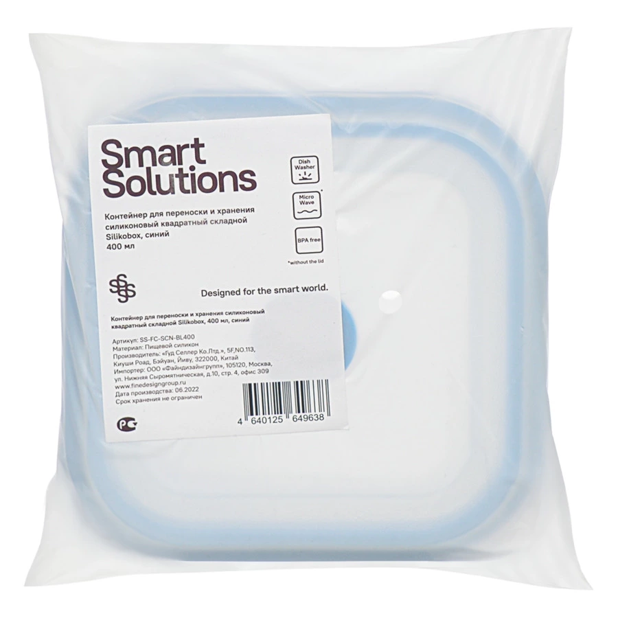 Материал: пищевой силикон. Размеры: 12х12х6,5 см. Размеры в сложенном виде: 12х12х3 см. Объем: 400 мл. Цвет: синий.