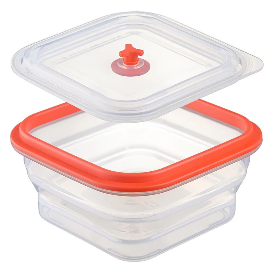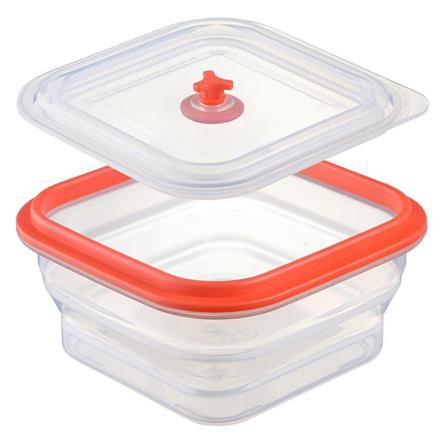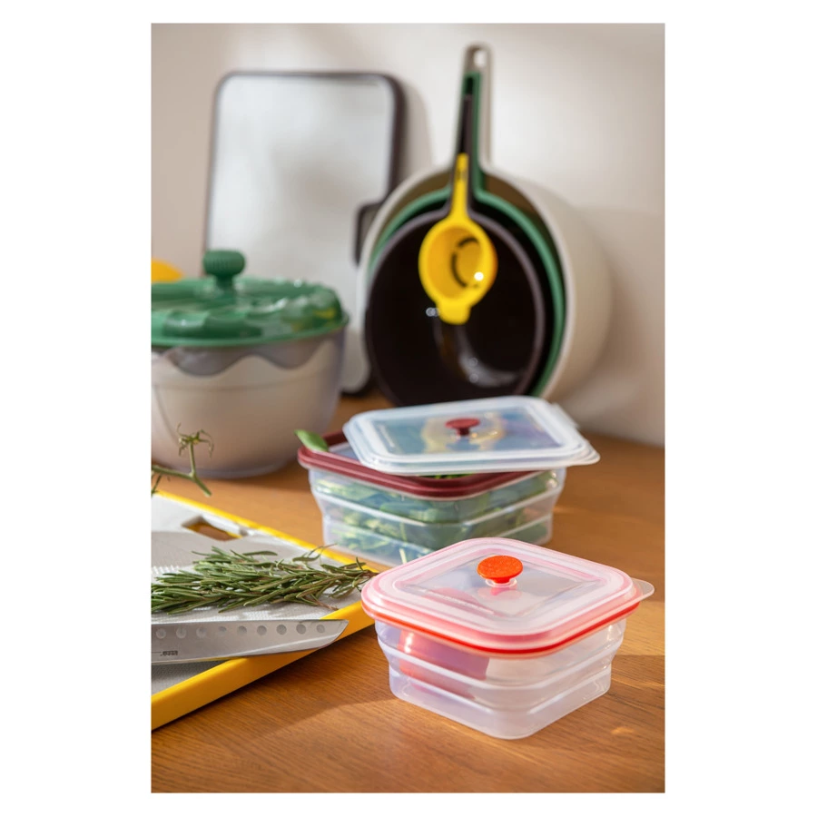 Материал: пищевой силикон. Размеры: 13,5х13,5х7 см. Размеры в сложенном виде: 13.5х13,5х3,2 см. Объем: 600 мл. Цвет: красный.