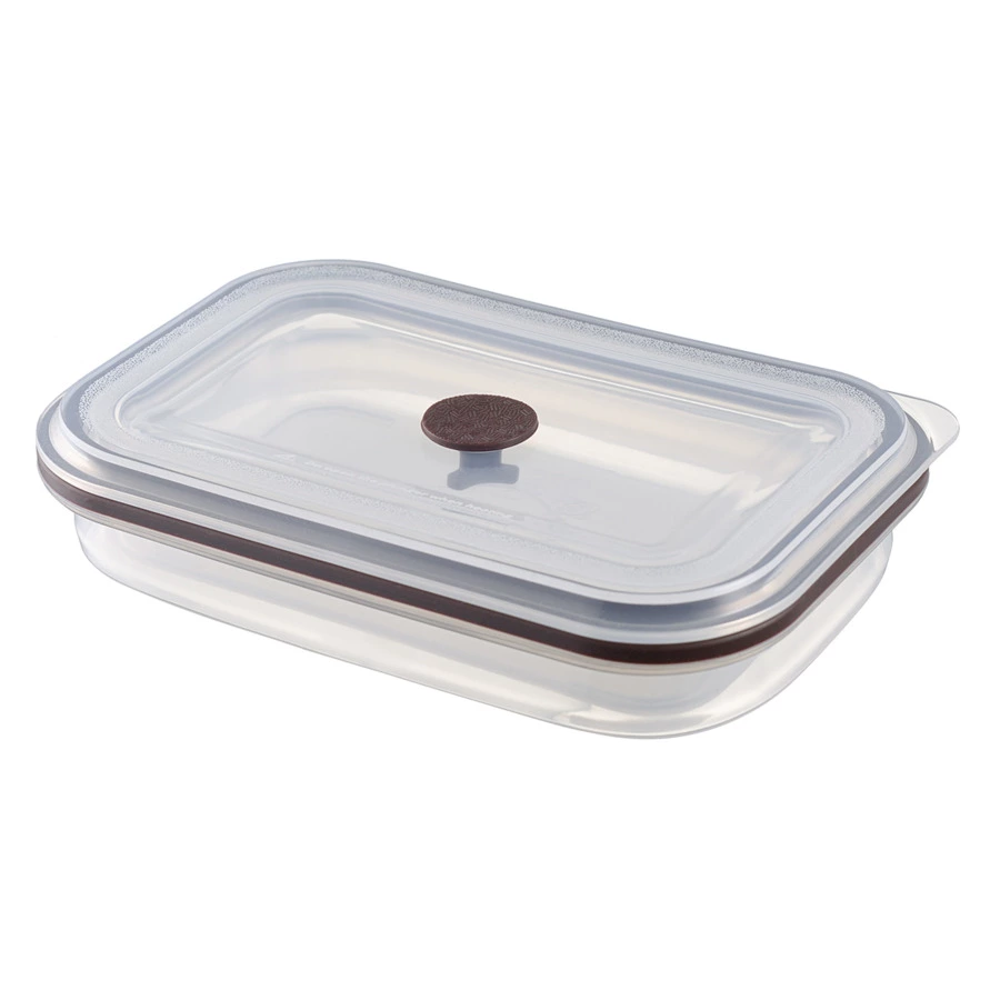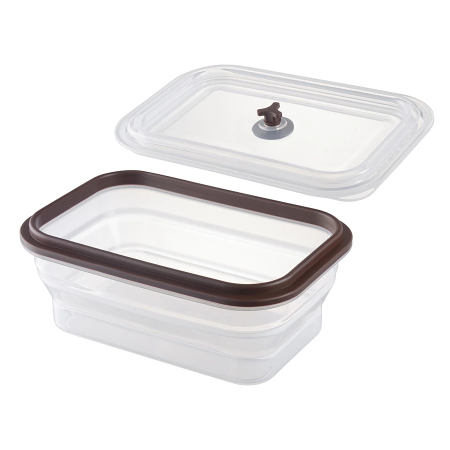 Материал: пищевой силикон. Размеры: 19х13х7,7 см. Размеры в сложенном виде: 19х13х3,4 см. Объем: 900 мл. Цвет: темно-сливовый.