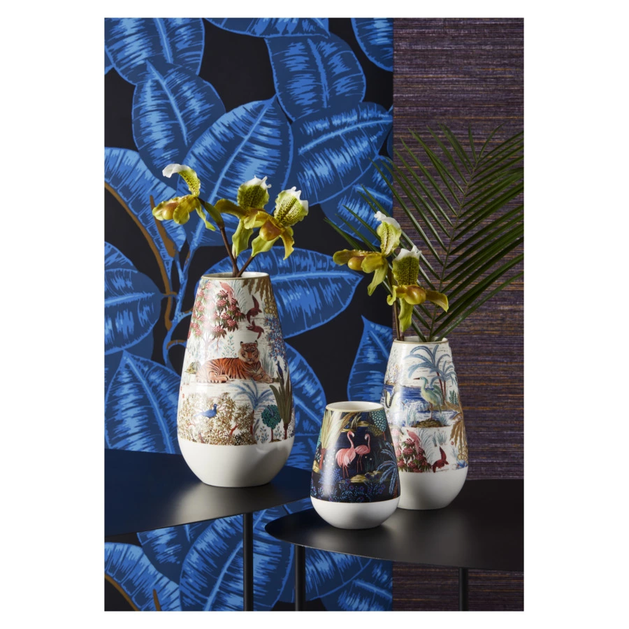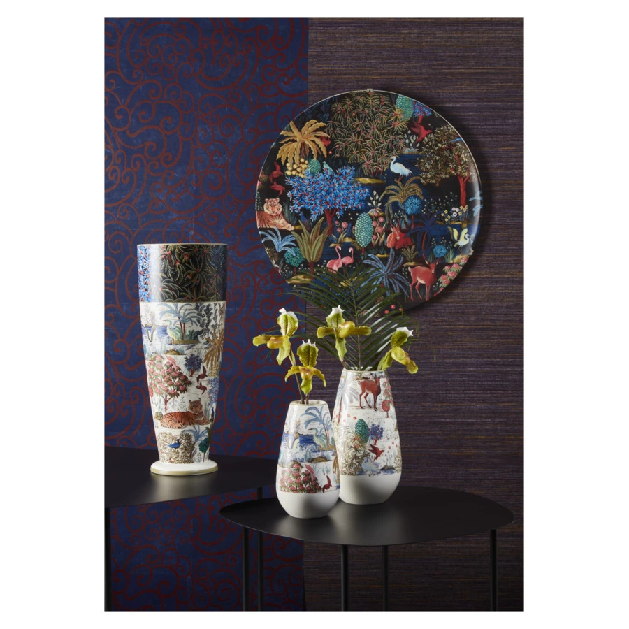 Коллекция «Дворцовый сад», созданная в сотрудничестве с известным модным домом Pierre Frey, вдохновлена одноимённой серией обоев. Эффектная линейка посуды с яркими оттенками и высокой детализацией рисунков погружает в путешествие, полное очарования и восторга. Это идиллическое изображение богатой экзотической растительной жизни, сменяющееся историями из другого времени и места. Различные виды дикой природы появляются посреди пышных пейзажей, изображённых в великолепных насыщенных цветах.