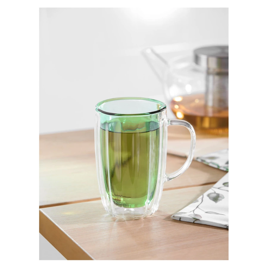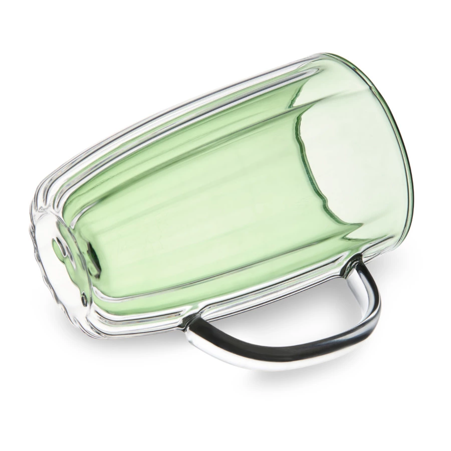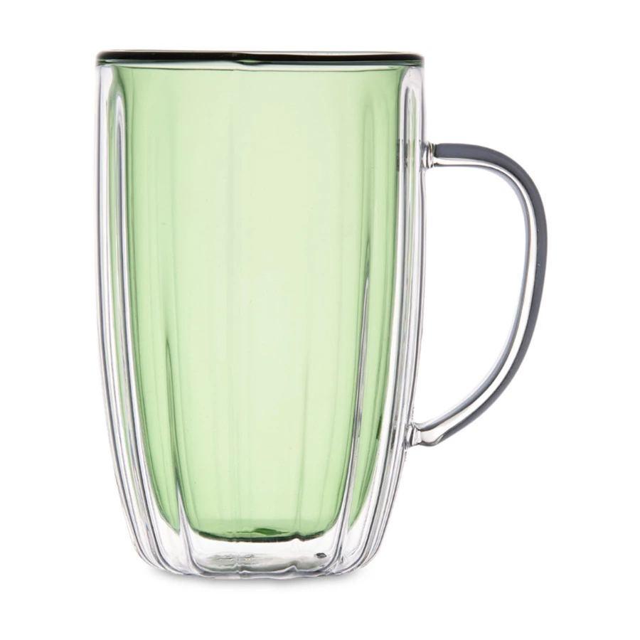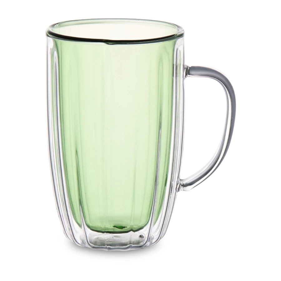 Большая кружка из коллекции Cafe de Paris идеально подойдет для латте или фраппучино. Модель, изготовленная из прочного и безопасного стекла, имеет особую конструкцию – двойные стенки. Благодаря этому содержимое сохраняет свою изначальную температуру в течение долгого времени. Вы можете наслаждаться любимым напитком, не опасаясь ни ожогов, ни его скорого остывания. Кружка от Decor de table комфортно лежит в руке за счет своей формы и удобной ручки. Эстетичный вид изделию придает светло-зеленый оттенок внутренних стенок. Посуда смотрится оригинально и стильно даже будучи пустой.