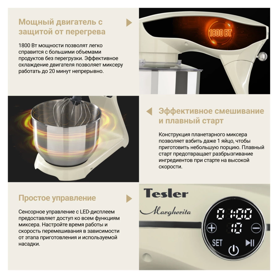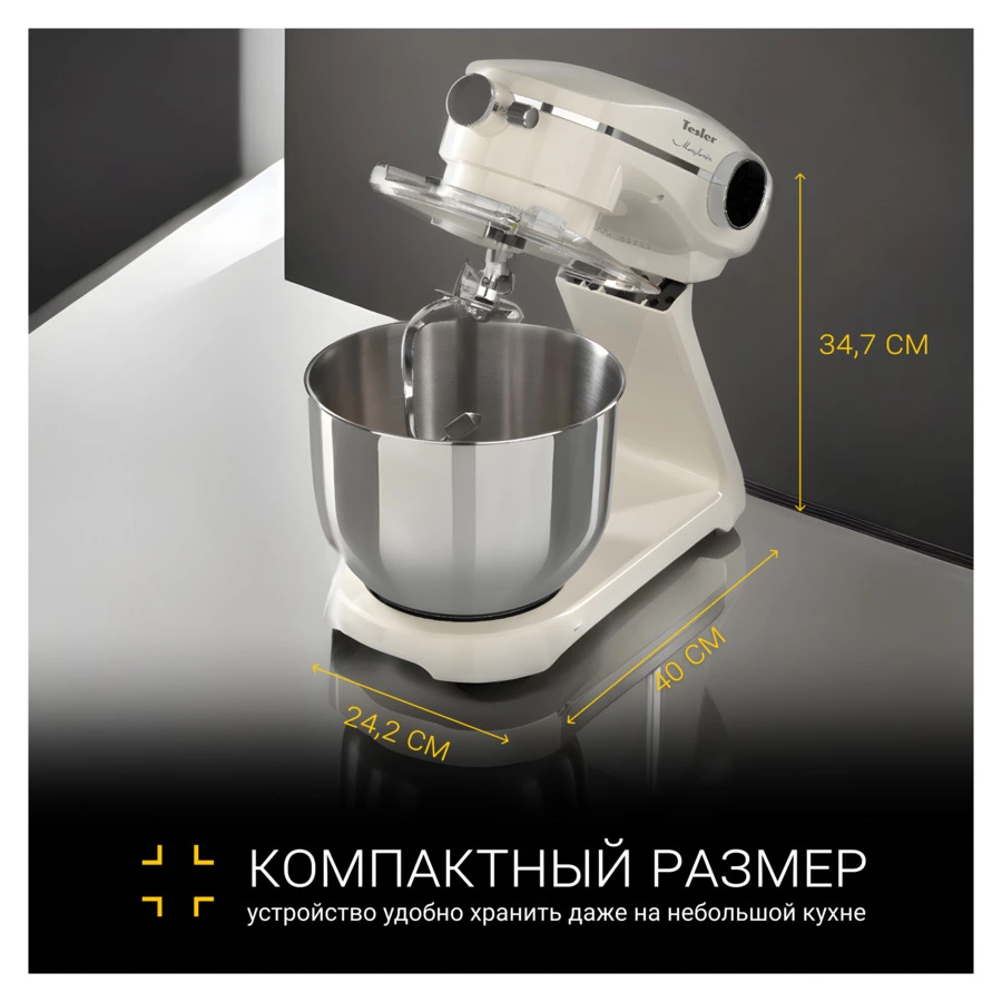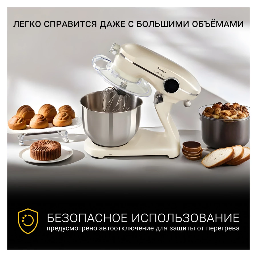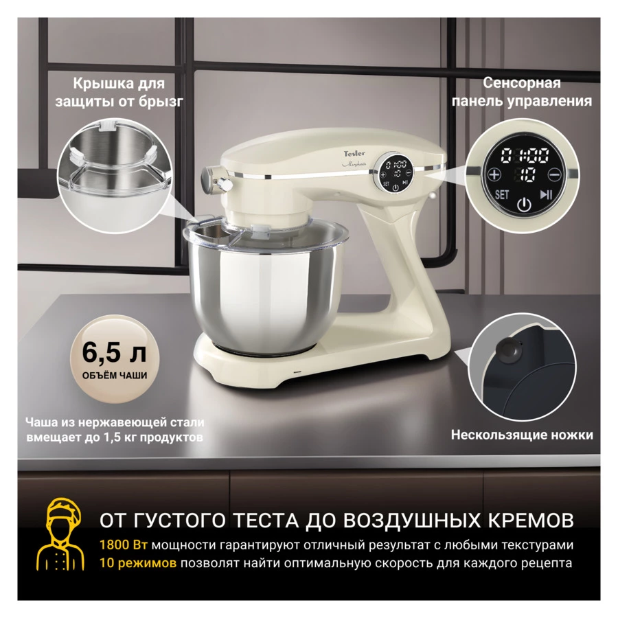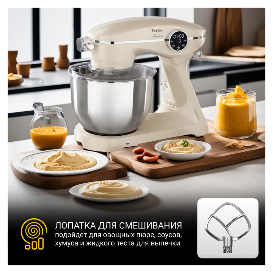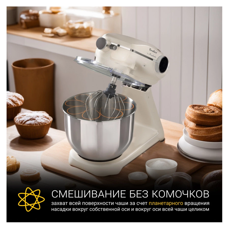 Кухонная машина с планетарным смешиванием Tesler KM-1860 позволит вам с легкостью создавать разнообразные и вкусные блюда. Планетарная система смешивания предоставляет максимальное покрытие всей поверхности чаши, вращая насадку не только вокруг собственной оси, но и вокруг оси чаши. Это обеспечивает равномерное перемешивание ингредиентов, исключая образование комков или несмешанных участков.