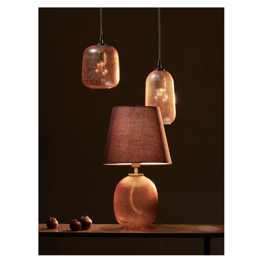 Материалы: стекло, железо. Размеры: 19х19х32 см. Цвет: терракотовый. Длина провода: 1,5 м. Тип цоколя: Е27. Максимальная мощность лампы: 40 Вт. Степень пылевлагозащиты: IP20. Площадь освещения: 2,7 кв.м. Лампы в комплекте: нет.