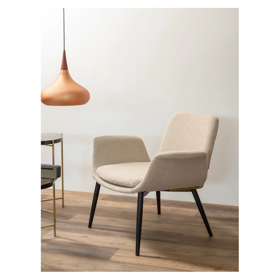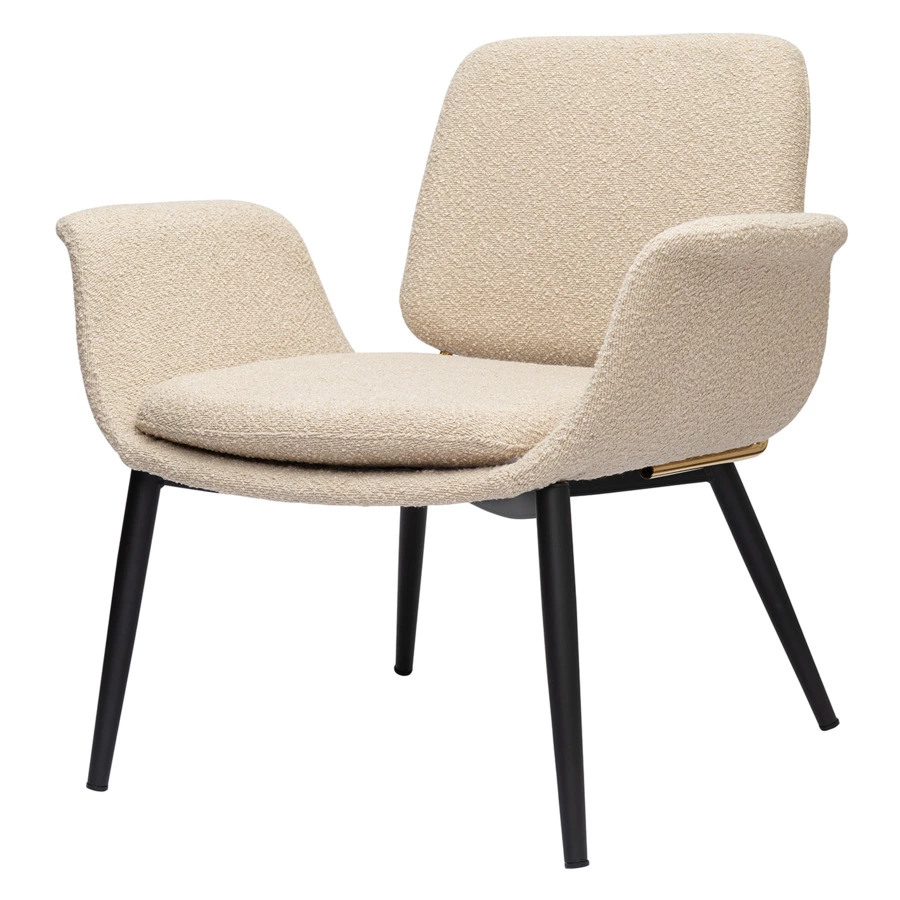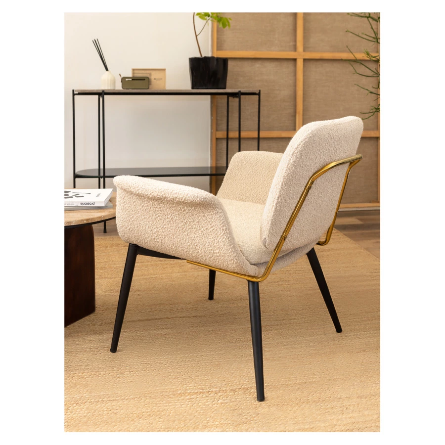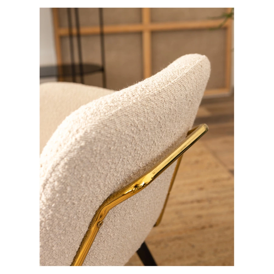 - Обивка из буклированной ткани делает кресло уютным и элегантным. Прочный и износостойкий материал долго сохраняет первоначальные качества, легко чистится.