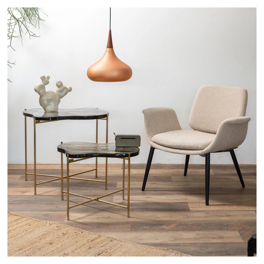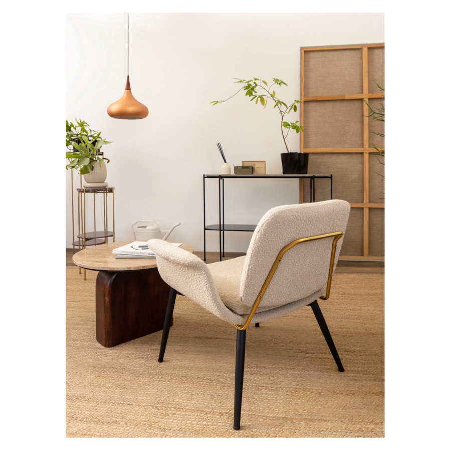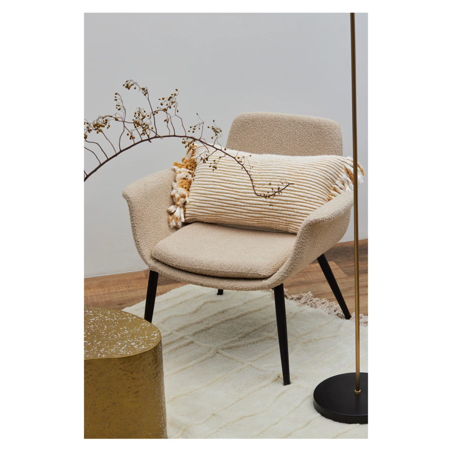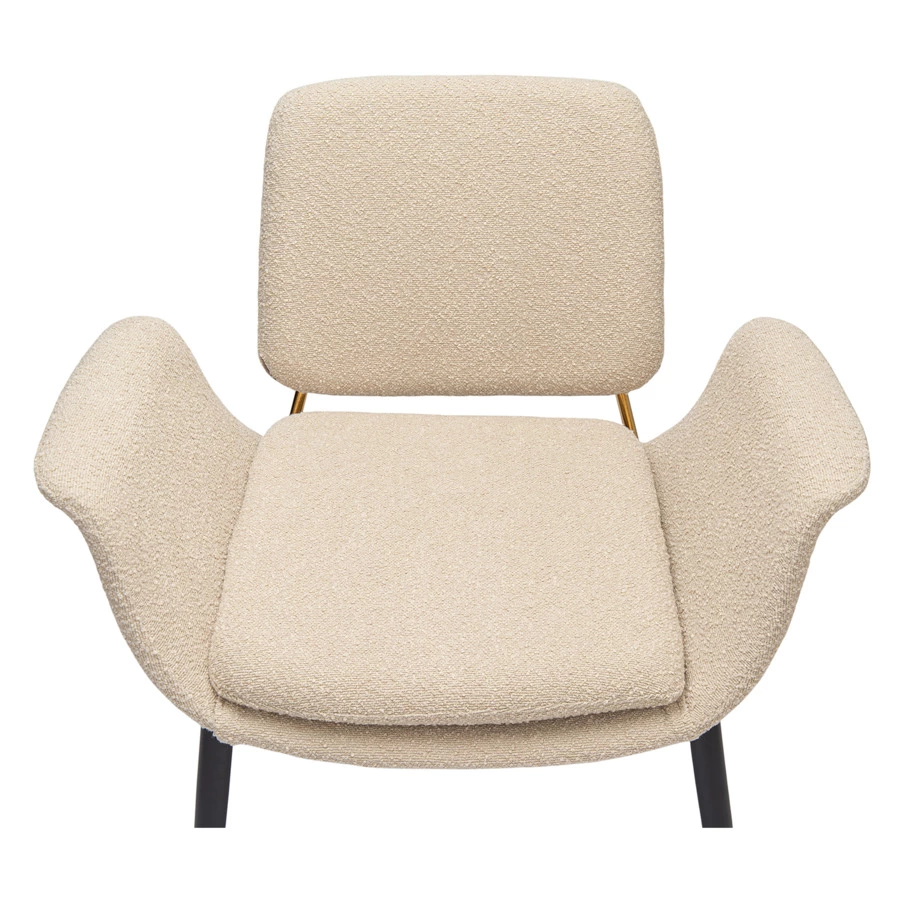 - Обивка из буклированной ткани делает кресло уютным и элегантным. Прочный и износостойкий материал долго сохраняет первоначальные качества, легко чистится.