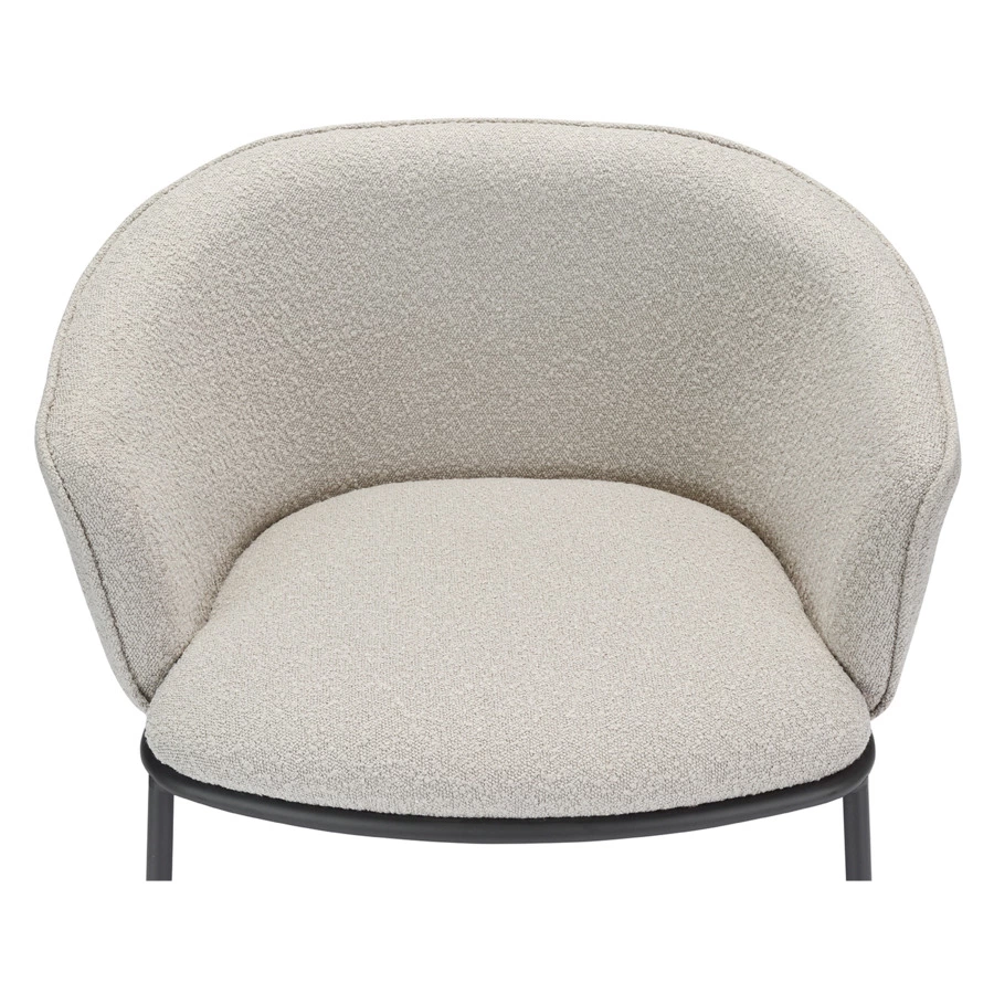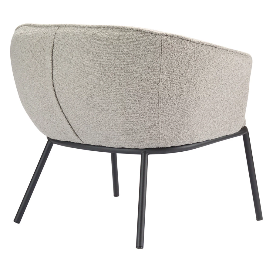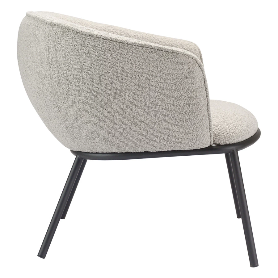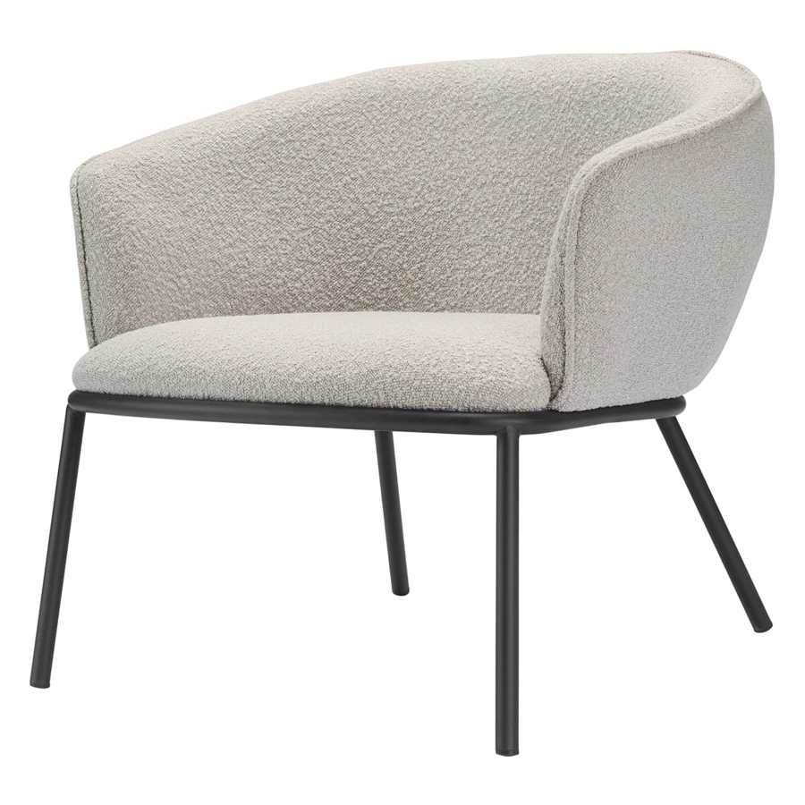 Лаунж-кресло Paal удачно сочетает в себе элементы современного и классического стилей. Изюминку модели придает сплошная спинка, плавно переходящая в подлокотники, и буклированная обивка. Такой дизайн обеспечивает не только оригинальный вид, а также комфорт при сидении и приятные тактильные ощущения. Светлая мебель с лаконичным силуэтом идеально вписывается в интерьер гостиной, рабочего кабинета или спальни, оформленных в скандинавском стиле, лофт, эклектика, фьюжн, неоклассика и др.