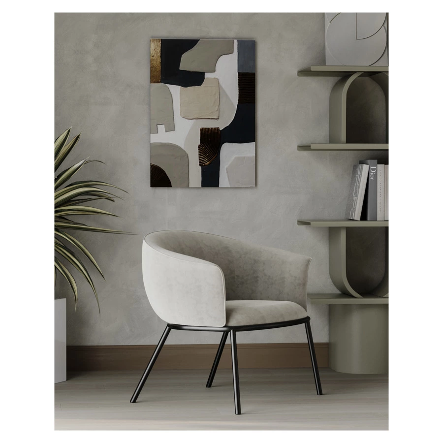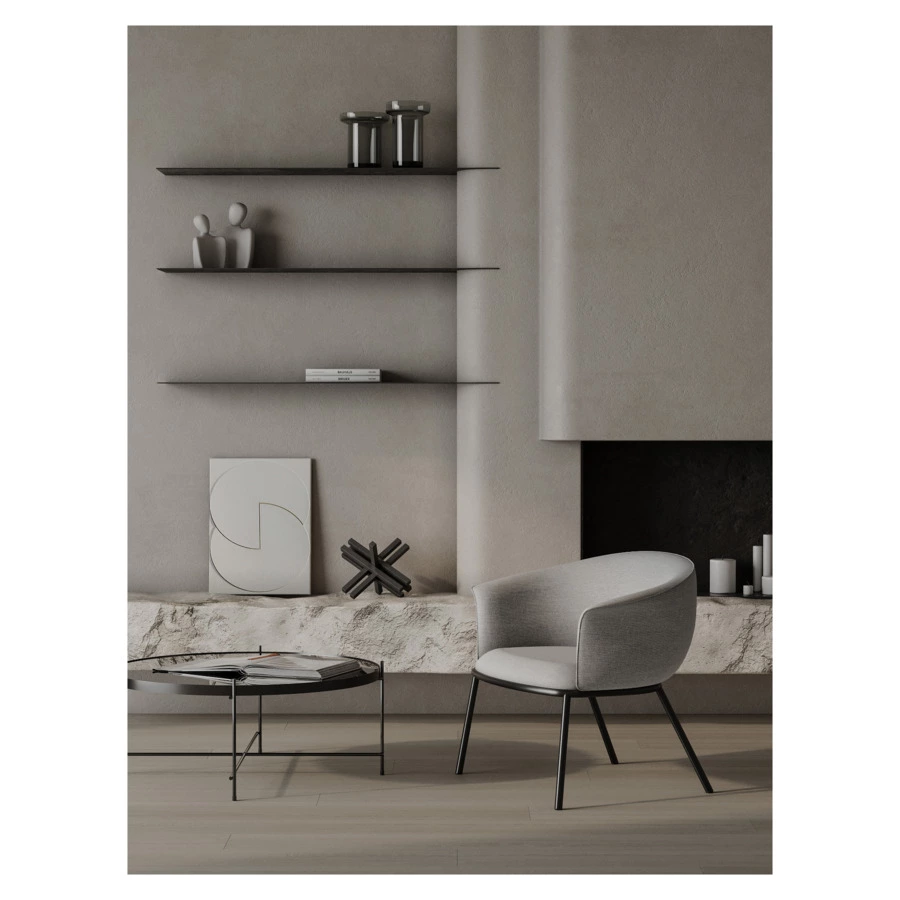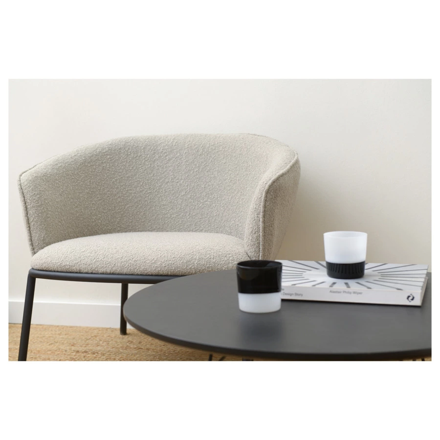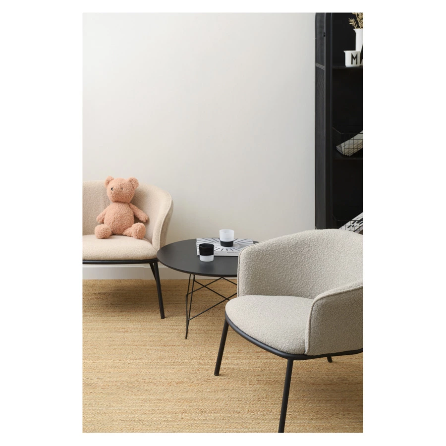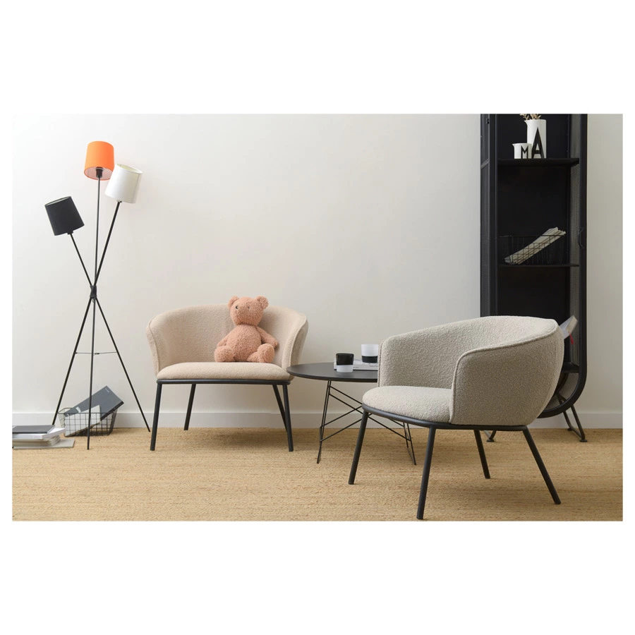 Лаунж-кресло Paal удачно сочетает в себе элементы современного и классического стилей. Изюминку модели придает сплошная спинка, плавно переходящая в подлокотники, и буклированная обивка. Такой дизайн обеспечивает не только оригинальный вид, а также комфорт при сидении и приятные тактильные ощущения. Светлая мебель с лаконичным силуэтом идеально вписывается в интерьер гостиной, рабочего кабинета или спальни, оформленных в скандинавском стиле, лофт, эклектика, фьюжн, неоклассика и др.