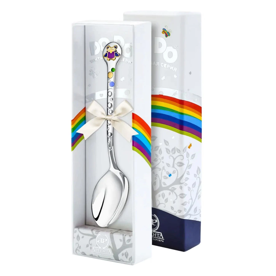 1. Ложка детская DODO «Совёнок» с эмалью - 1 шт. (средний вес 1х20 гр. = 20 гр.) Длина: 125 мм. Ширина: 26 мм. Высота: 10 мм.