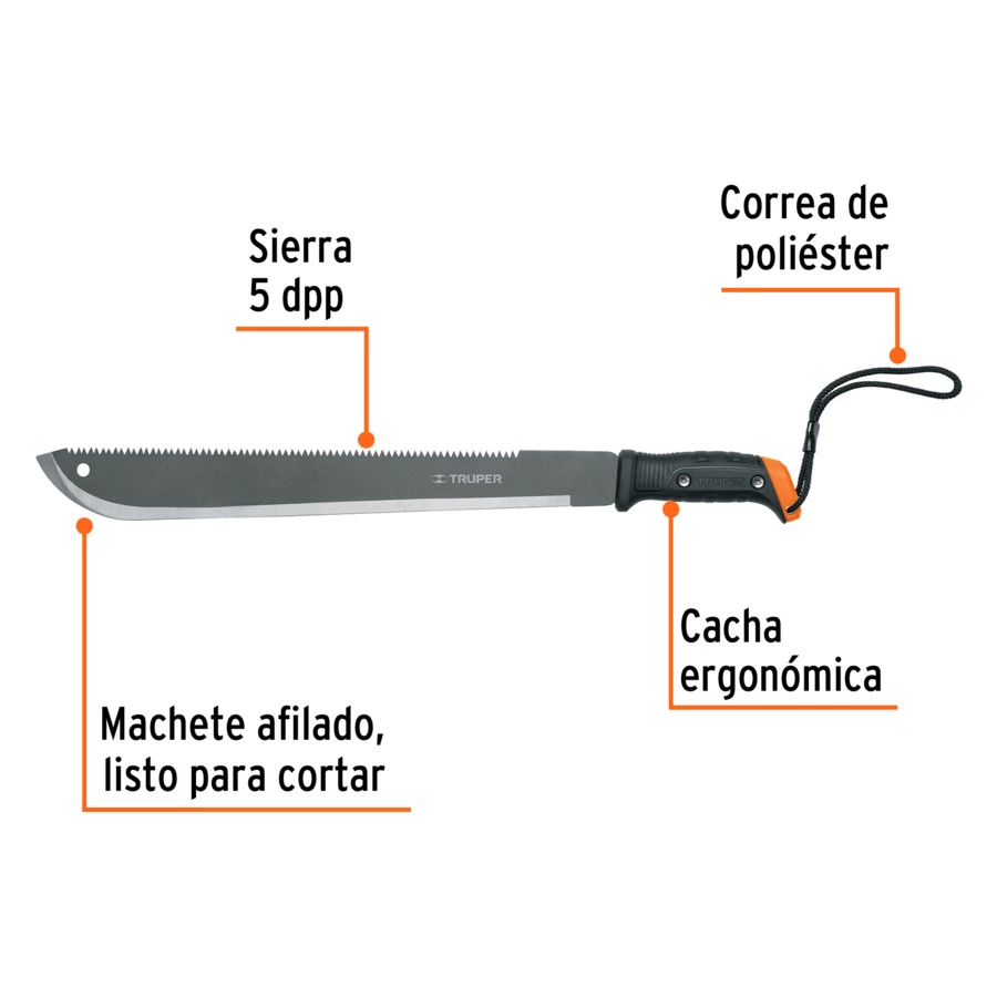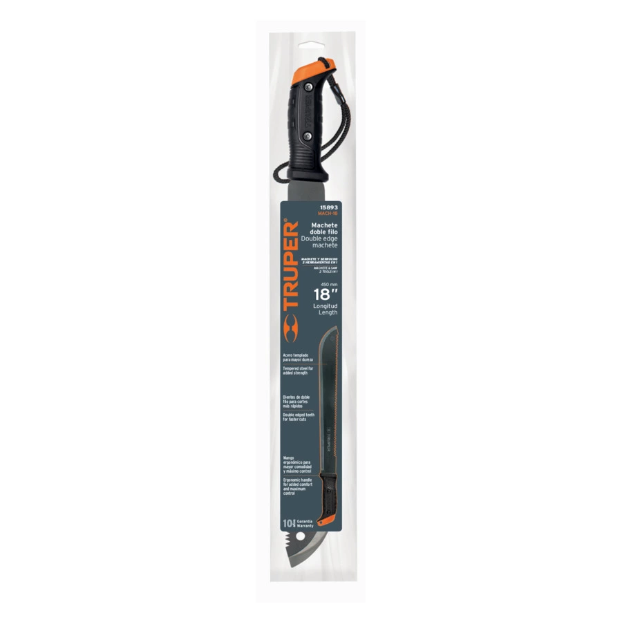 Мачете двустороннее Truper 46 см, черная ручка, 15893, 00010766405