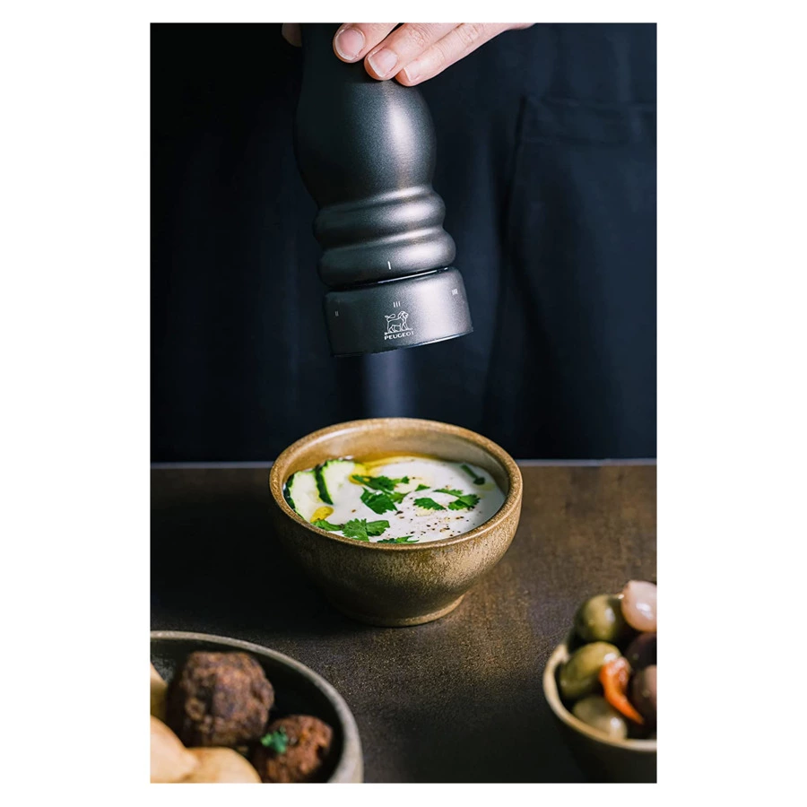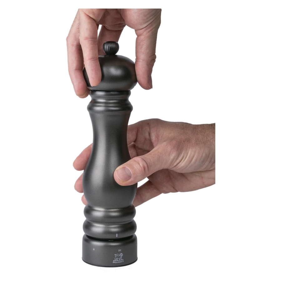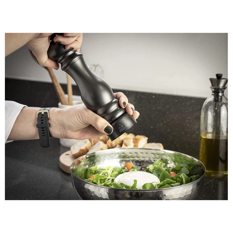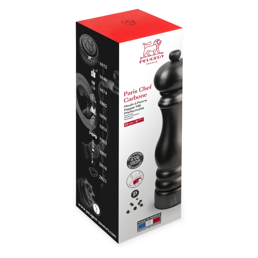 Мельница для перца из коллекции Paris — флагманская модель марки Peugeot! Мельница высотой 22,0 см отличается идеальным эргономичным дизайном. Её уникальный механизм помола завоевал популярность среди не только среди шеф-поваров по всему миру но среди настоящих гурманов и ценителей. В этой версии корпус из нержавеющей стали стилизован под карбон. Наслаждайтесь использованием этой стильной мельницой как в процессе приготовления, так и при сервировке стола. Удобная форма. Сделано во Франции. Механизм с пожизненной гарантией. Пятилетняя гарантия на корпус. Для измельчения чёрного, белого, зелёного и красного перца, розового перца (не более 15 % в смеси перцев) и семена кориандра. Запатентованная система регулировки помола u'Select. Идеальный подарок.