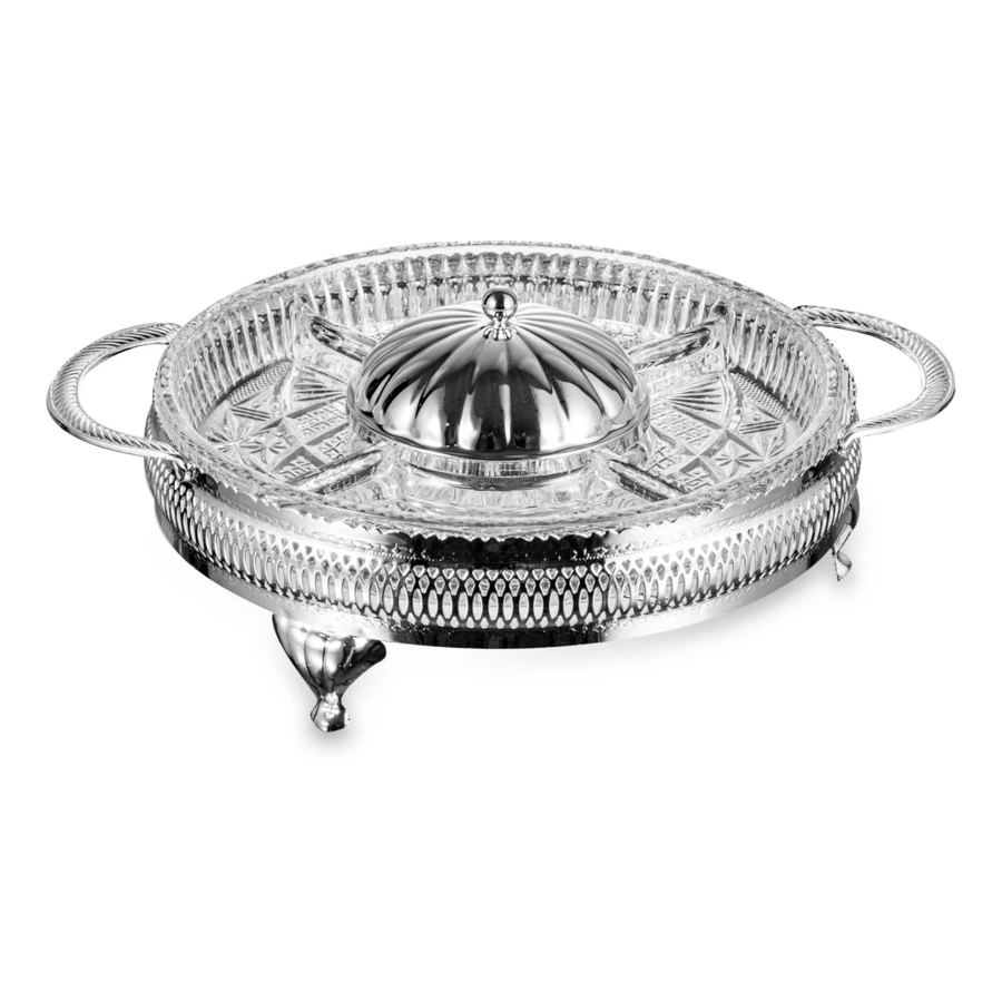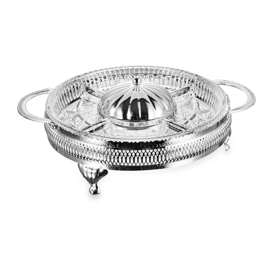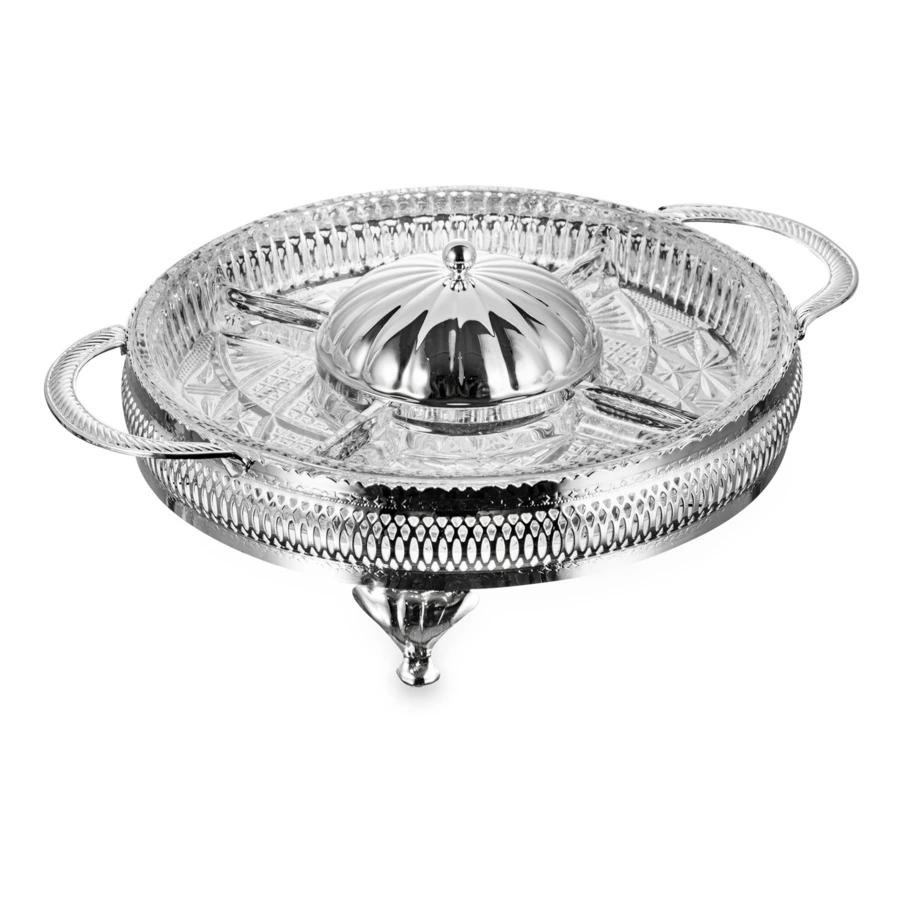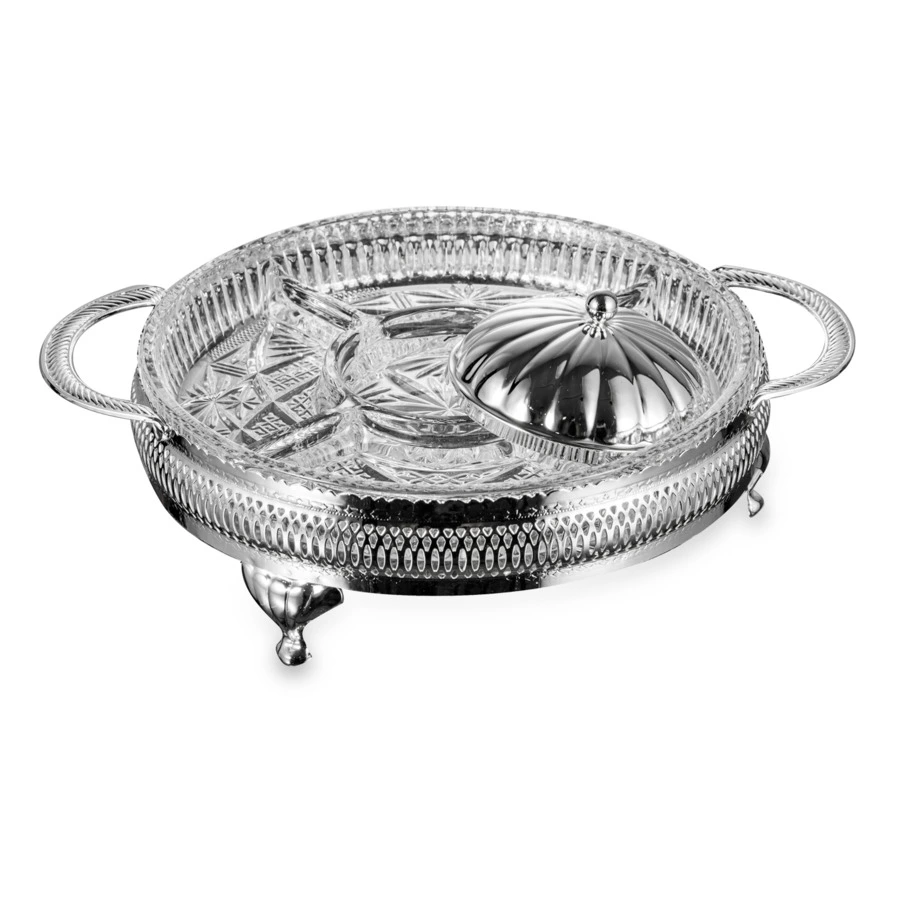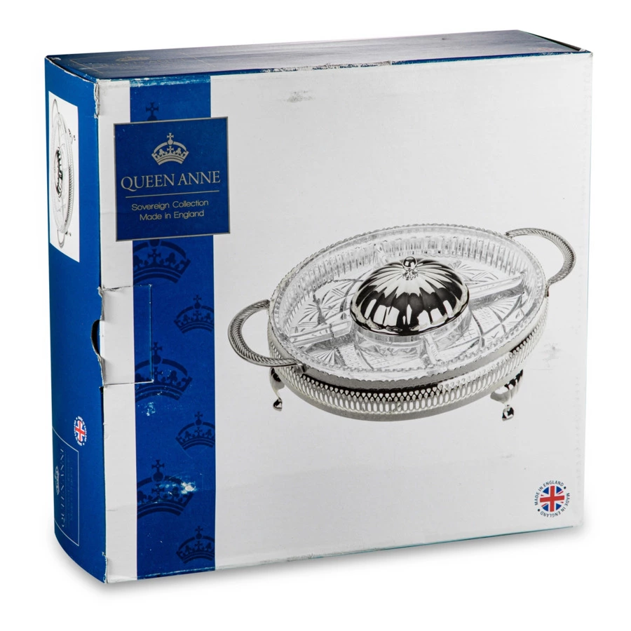 Менажница 5 секций с центральной крышкой Queen Anne с ручками 25 см, сталь, стекло, посеребрение, 00010647038