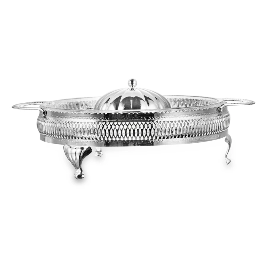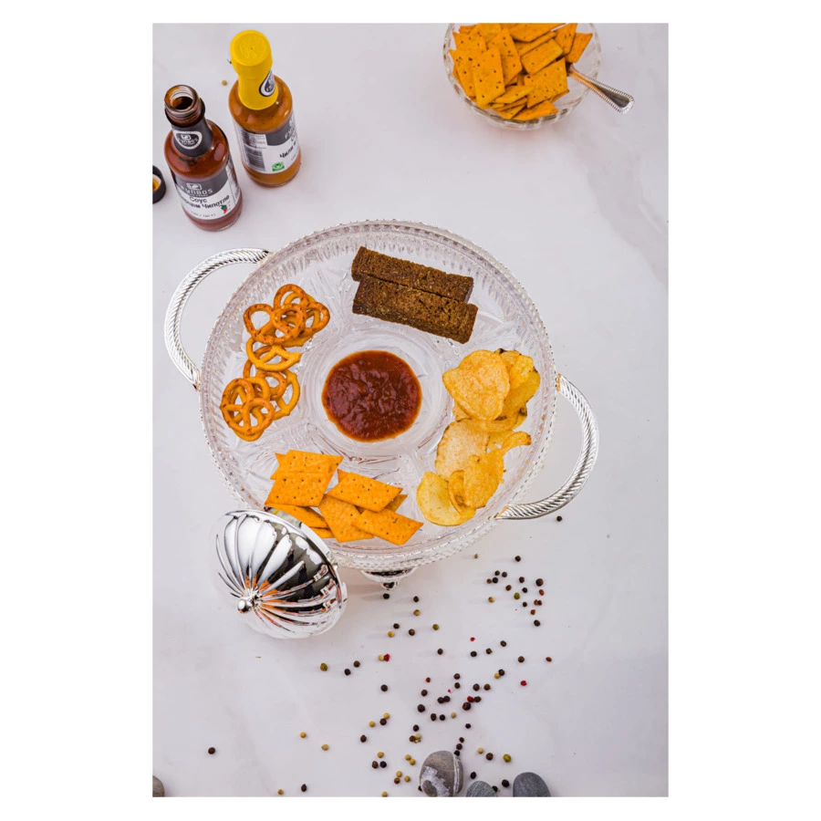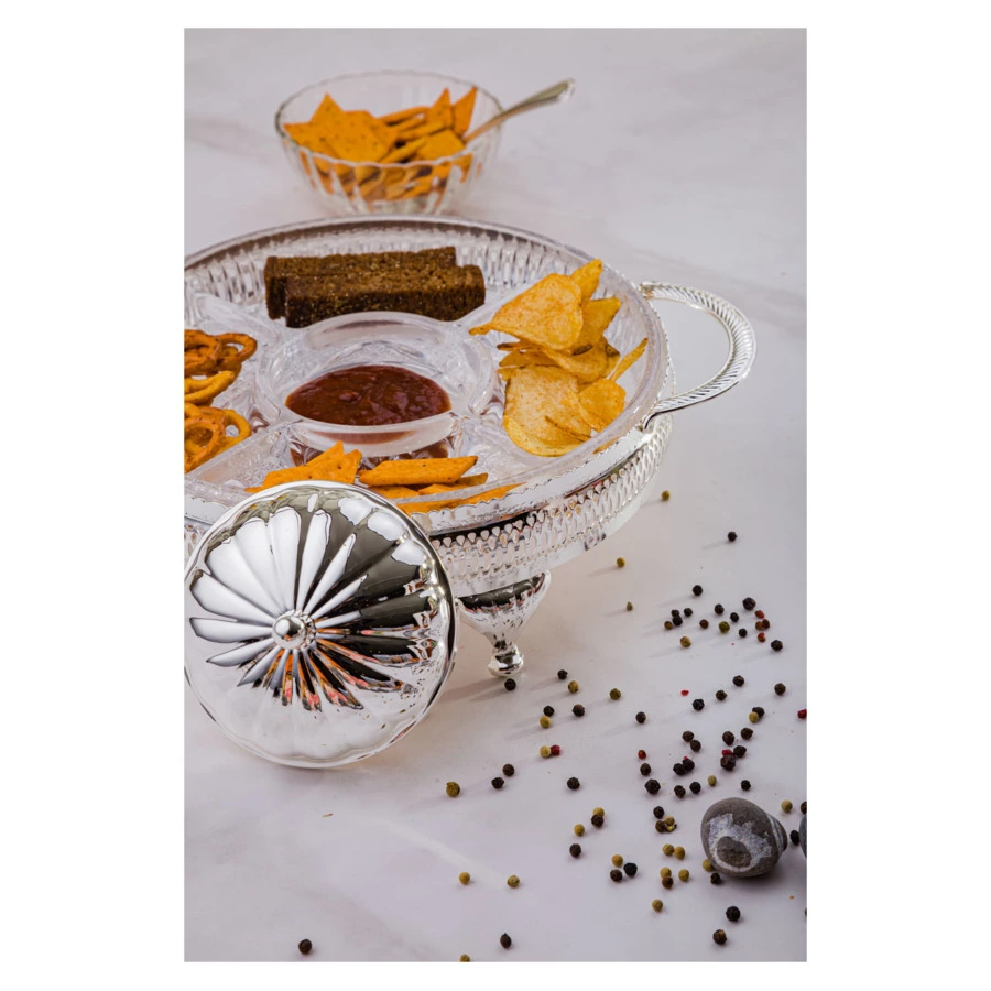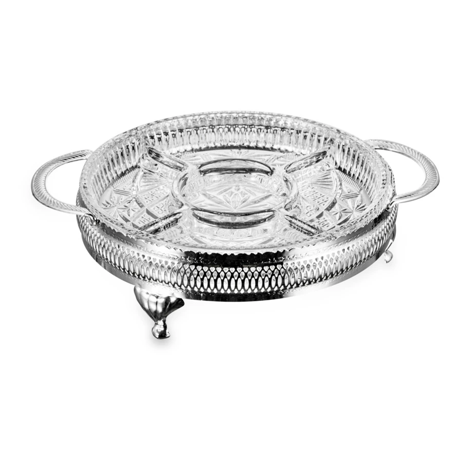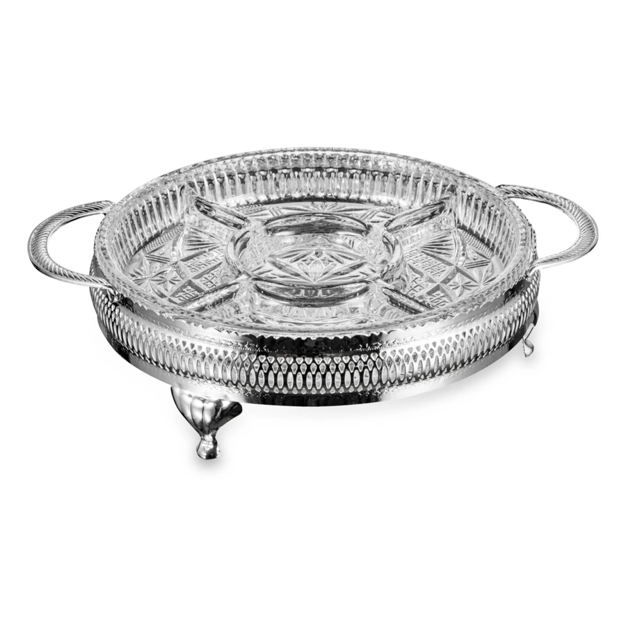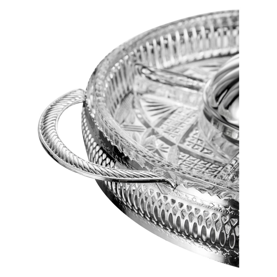 Менажница 5 секций с центральной крышкой Queen Anne с ручками 25 см, сталь, стекло, посеребрение, 00010647038