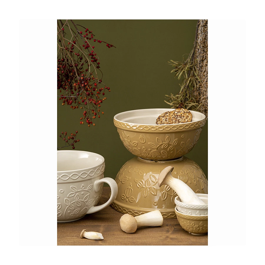 Миска бежевого цвета с рельефным узором Ягоды Тайги из коллекции Russian North облегчит процесс приготовления блюд и подойдет для сервировки. Посуда предназначена для замешивания теста, смешивания ингредиентов, а также подачи салатов или фруктов. Изделие украшено рельефным растительным узором в виде стилизованных веточек с ягодами и листьями.