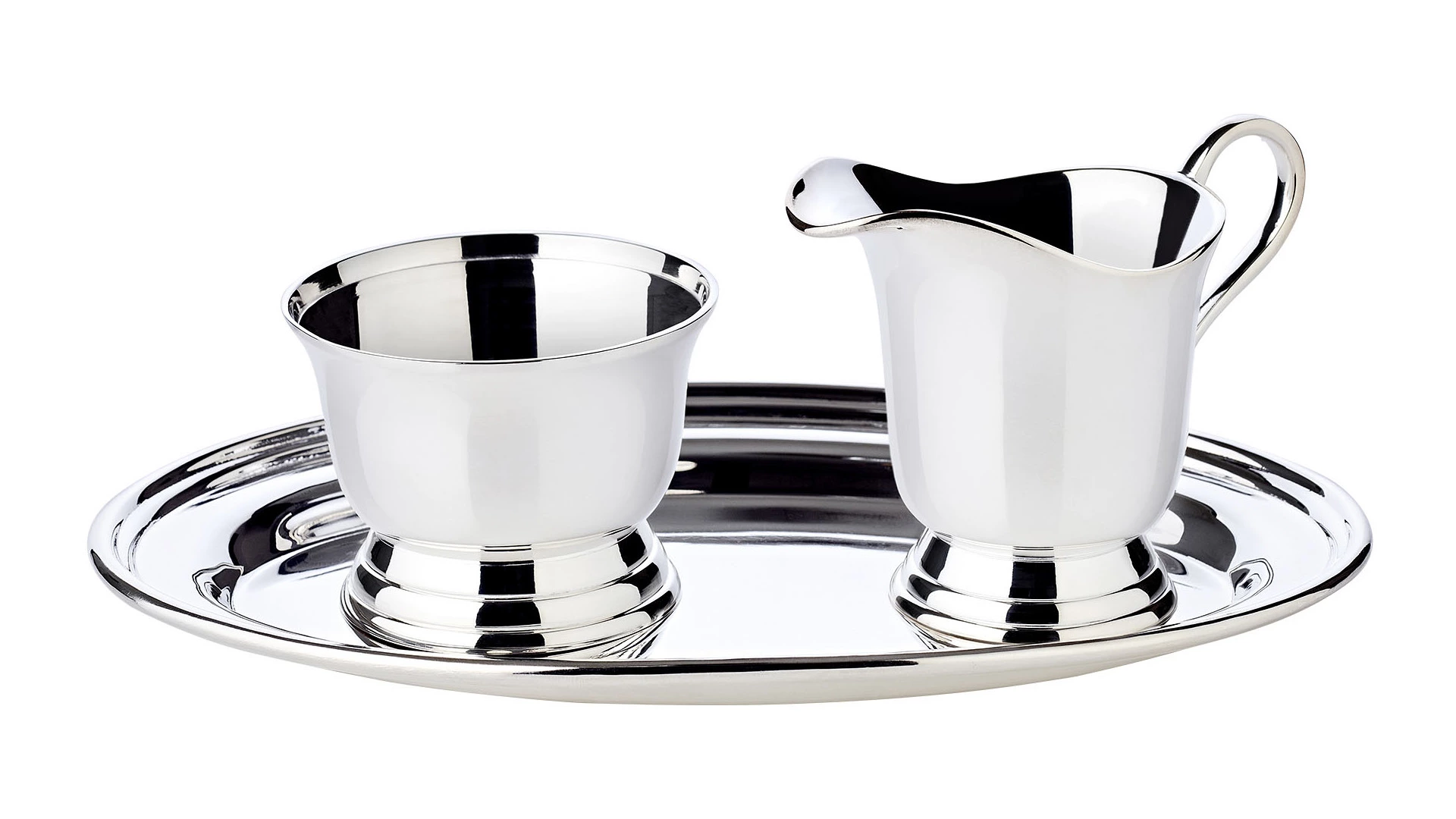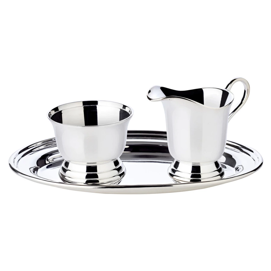 Набор «Джерси» от немецкого бренда Edzard станет прекрасным дополнением к любому классическому столовому сервизу. В комплект входит поднос 24х16 см, молочник 110 мл и сахарница 130 мл. Все предметы изготовлены из нержавеющей стали и покрыты толстым слоем серебра. Лаконичный дизайн дополняется игрой фактур: внешние стенки изделий имеют матовую поверхность, а внутренние – гладкую глянцевую. Набор «Джерси» от Edzard – идеальный выбор для завтраков или чаепитий, а также элегантный подарок на свадьбу или новоселье.
