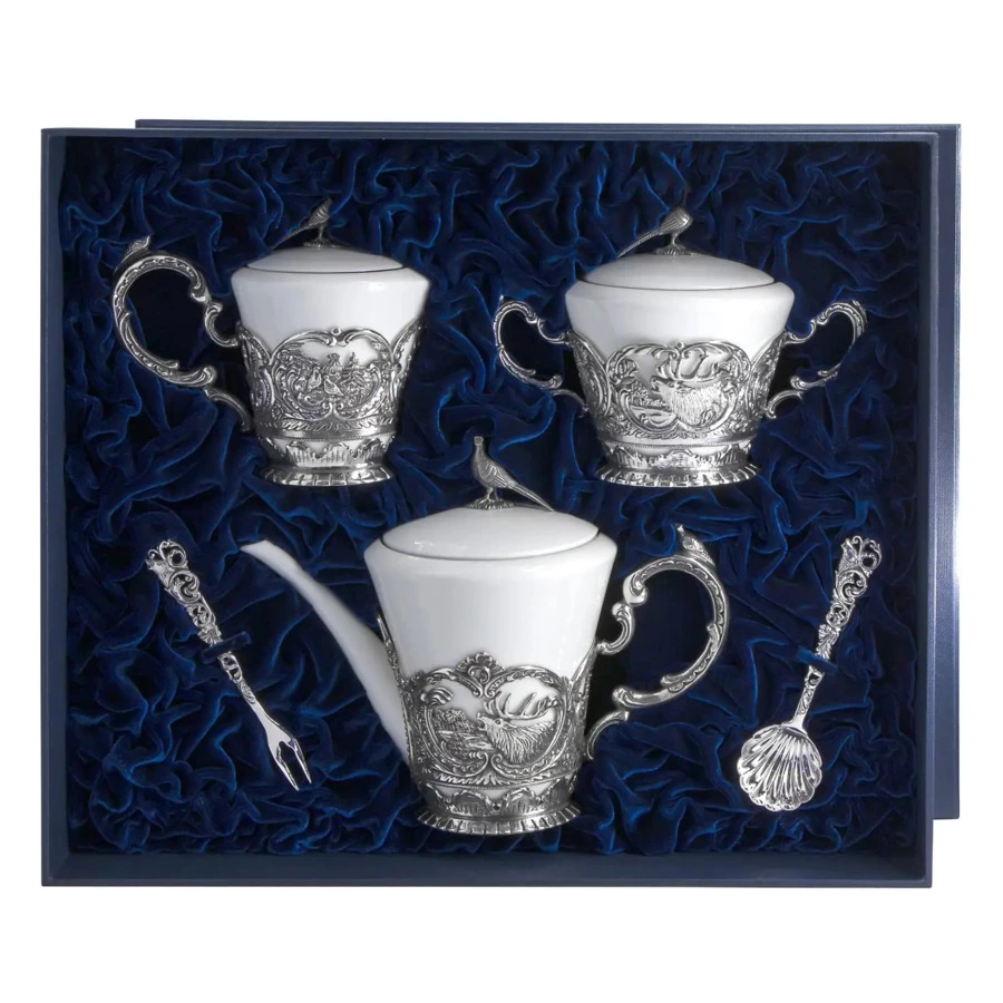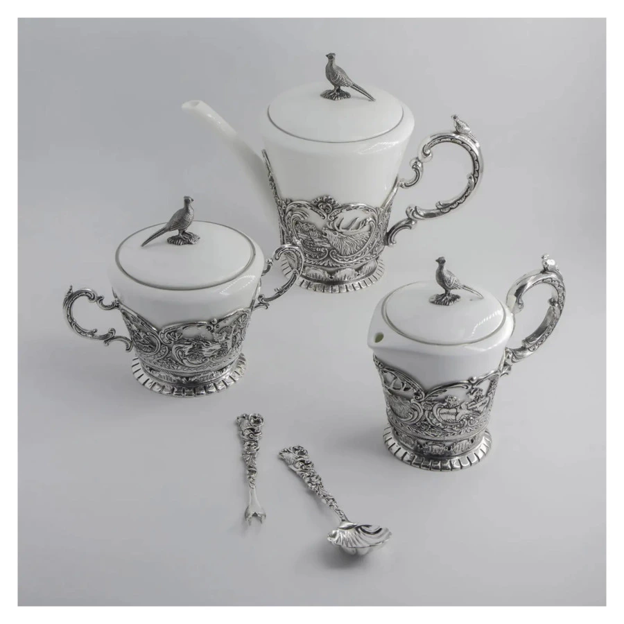 СЕРЕБРО&ФАРФОР – эксклюзивная коллекция Фабрики серебра «АргентА», созданная совместно с Императорским фарфоровым заводом. В основу дизайна коллекции легла красота природы, которая в сочетании с многовековыми традициями русских мастеров приобрела новый притягательный смысл, элегантность и завораживающую грацию. Чайные и кофейные сервизы из тончайшего костяного фарфора в изысканном серебряном обрамлении поражают своей красотой и высокой детализацией.