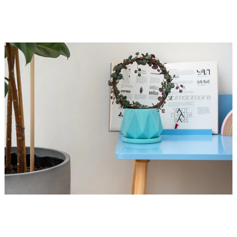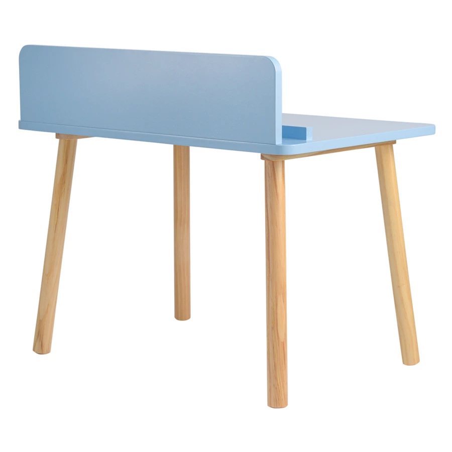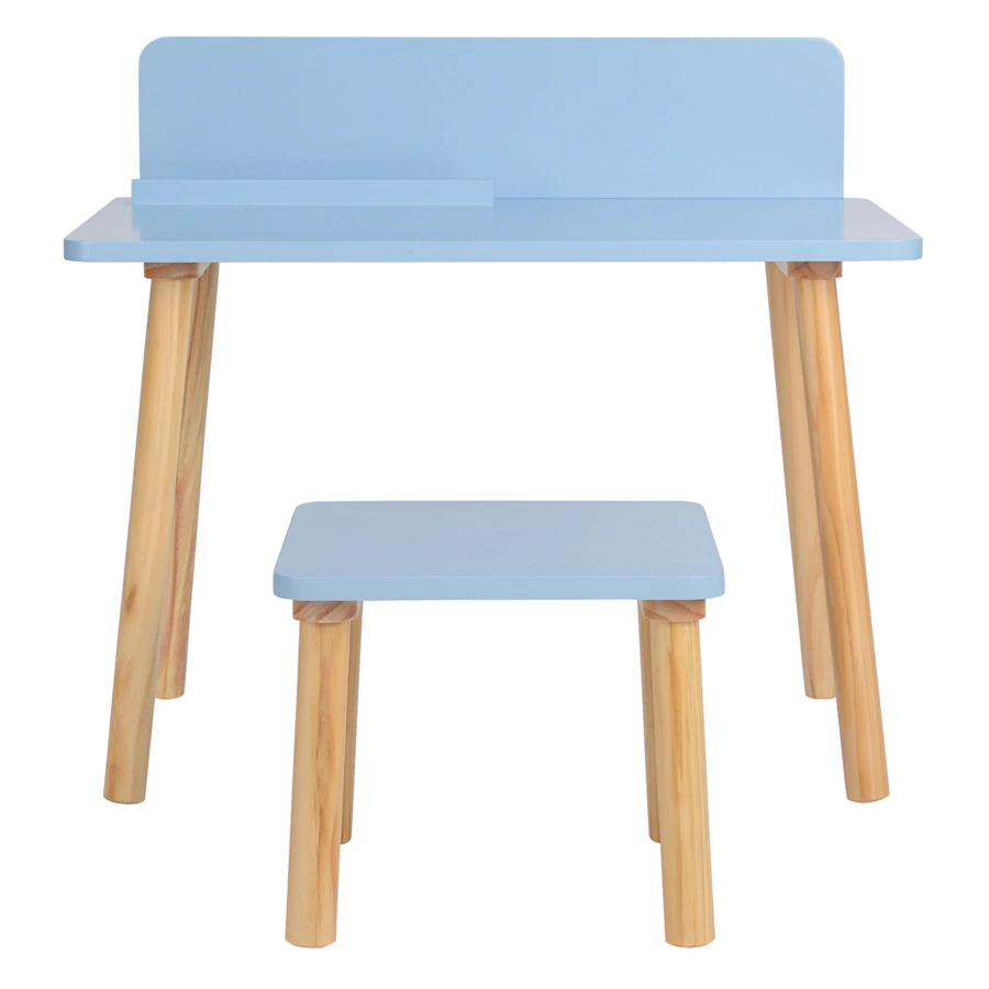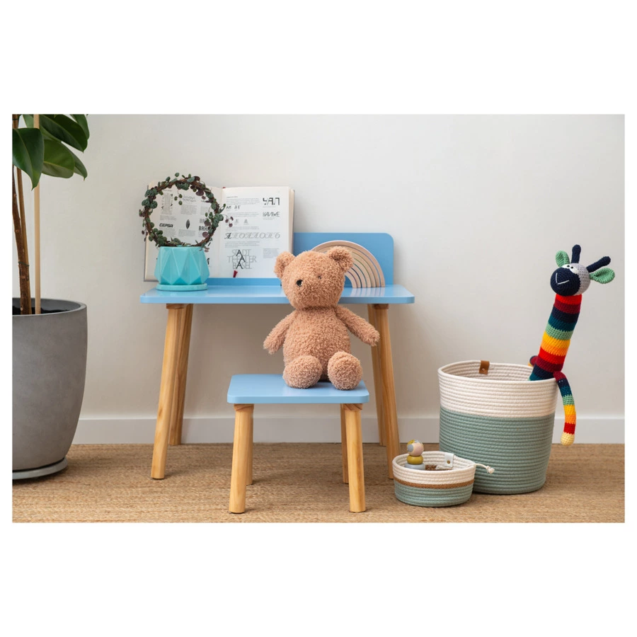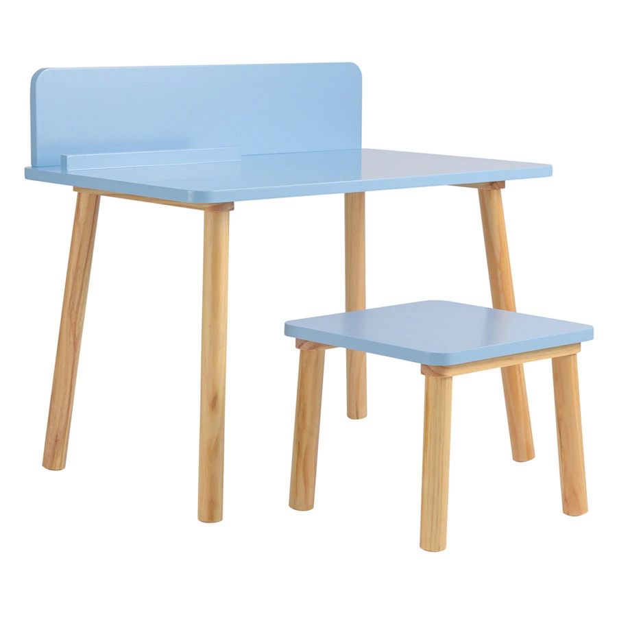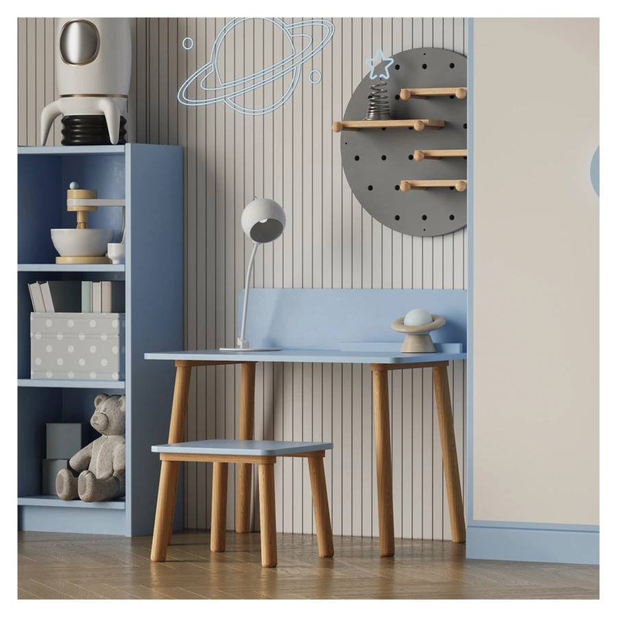Материалы: древесина сосны, МДФ. Размеры: стол – 75х50х67 см, стул – 35х35х29 см. Высота столешницы: 50 см. Цвет: голубой.
