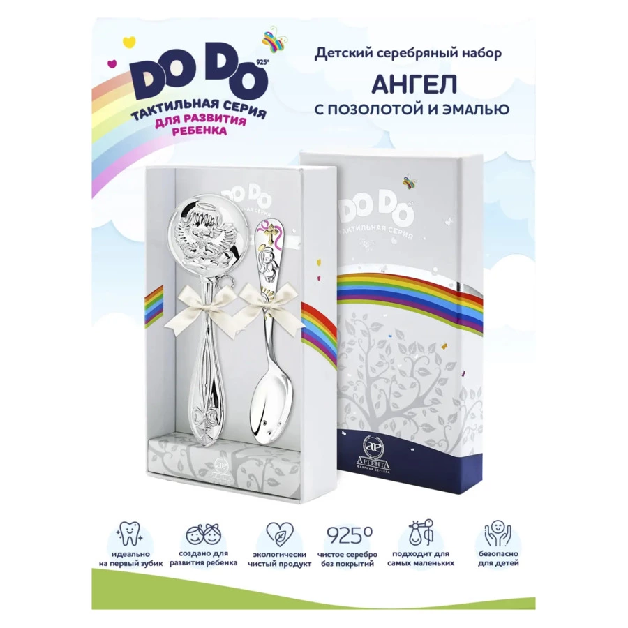 Коллекция DO DO – инновационный продукт, разработанный Фабрикой серебра «АргентА» совместно с ведущими специалистами в области логопедии, дефектологии и детской психологии. Тактильная серия DO DO одобрена педиатрами России и получила официальные заключения специалистов: она действительно способствует раннему развитию малышей.