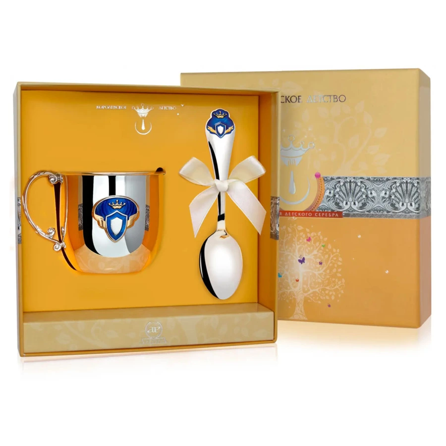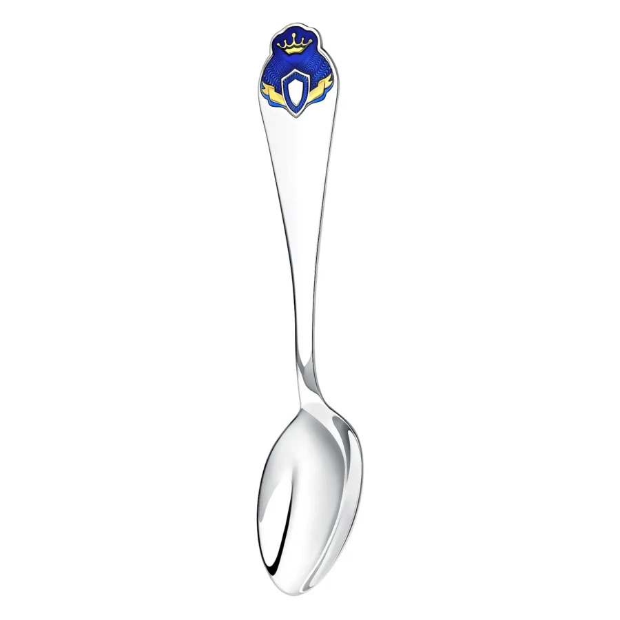 1. Ложка детская «Принц» частичная позолота с эмалью - 1 шт. (средний вес 1х30 гр. = 30 гр.) Длина: 135 мм. Ширина: 25 мм. Высота: 10 мм.