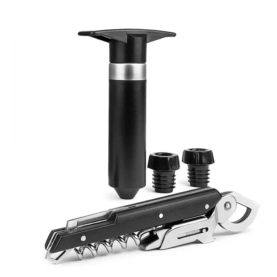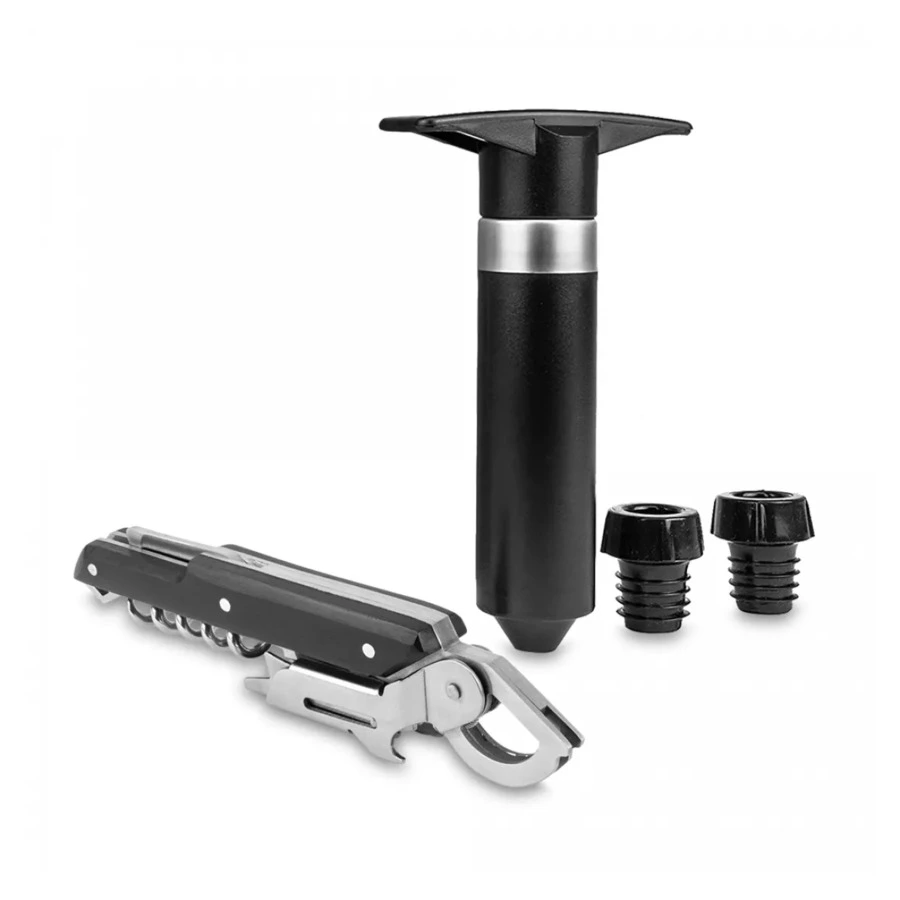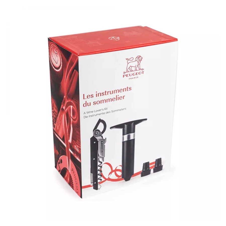 Подарочный набор винных аксессуаров Peugeot Clavelin + Epivac включает в себя штопор (нож) сомелье Clavelin, вакуумный насос и 2 пробки Epivac. Особенности штопора: штопор из нержавеющей стали, предназначенный для быстрого и безопасного открытия винных бутылок с натуральной или синтетической пробкой. Он оснащён острым складным ножом для лёгкого удаления фольги с горлышка, а также специальной опорой для лёгкого извлечения пробки без повреждения стекла. Штопор также имеет острую нарезную спираль, которая быстро проникает в пробку и легко извлекает её без разрушения. Рукоять из полимера обеспечивает комфорт и безопасность при использовании. Peugeot Claveline подходит как для профессионального, так и для домашнего использования и является надёжным и долговечным аксессуаром. Очень прост в использовании, помогает извлечь пробку без любых усилий. Peugeot Epivac — это набор для хранения вина, который позволяет сохранить свежесть и вкус напитка после открытия бутылки. В комплект входят вакуумная помпа и специальные пробки для бутылок. С помощью этого набора можно создать вакуум внутри бутылки, что помогает сохранить аромат и вкус вина на долгое время. Вакуумную помпу легко использовать и она позволяет достичь вакуума всего за несколько нажатий. Пробки Peugeot Epivac обеспечивают герметичное закрытие бутылок, предотвращая окисление вина и сохраняя его качество. Подарочный набор станет отличным выбором для тех, кто предпочитает хорошие вина, любит их дегустировать и хочет продлить их свежесть и вкус.
