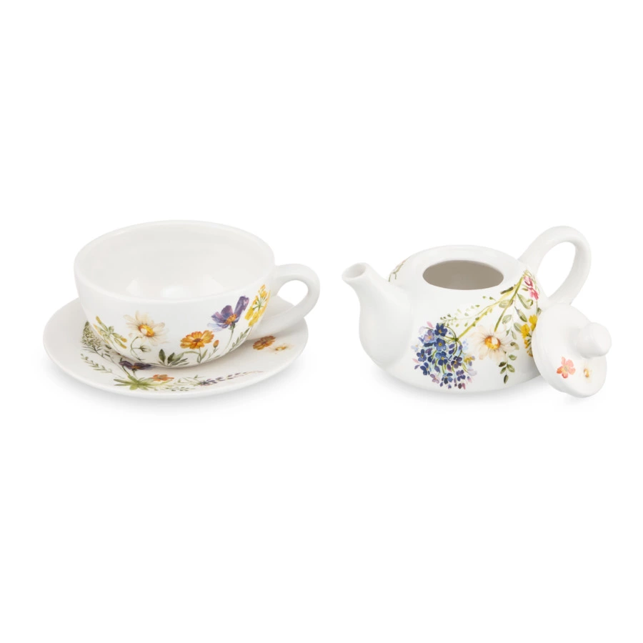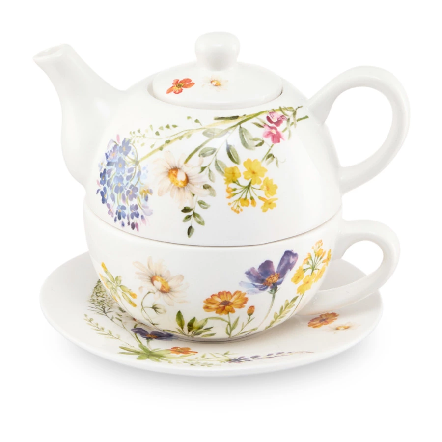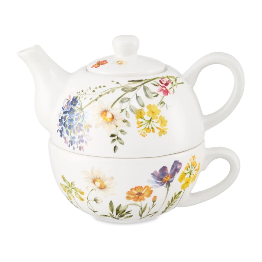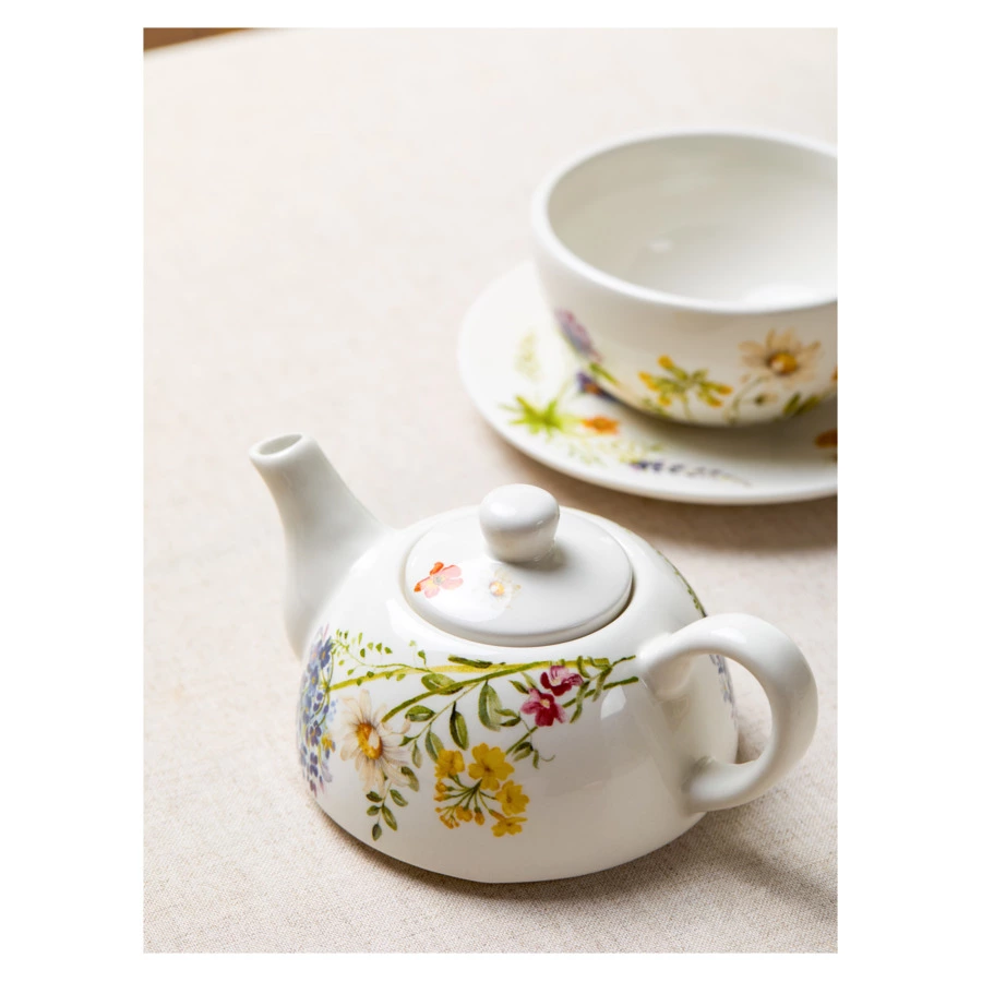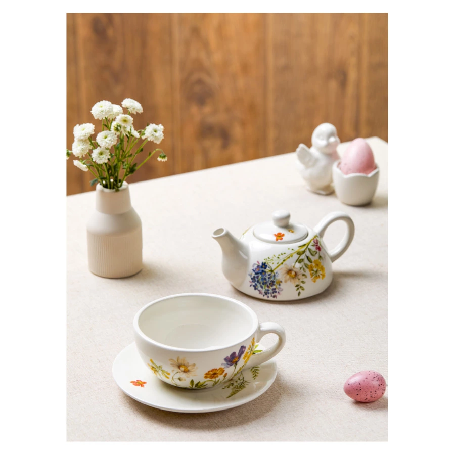 Набор Эгоист Decor de table Полевые цветы чайник 250 мл, чашка чайная 250 мл, керамика, белый, 00010756632