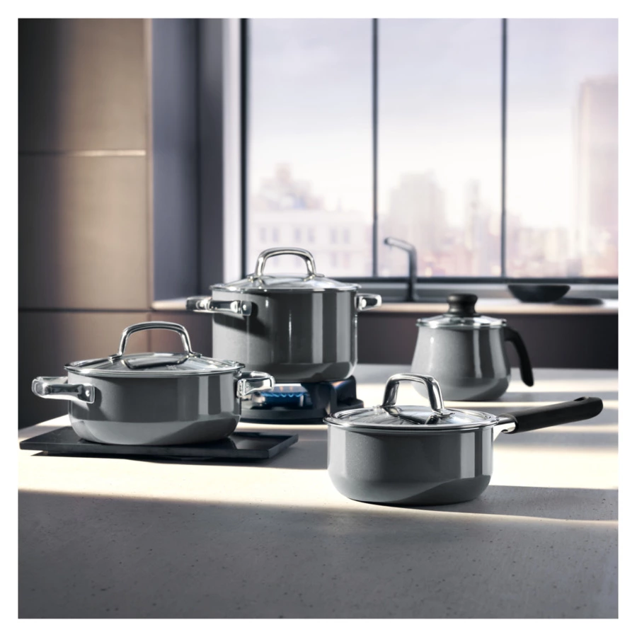 Посуда выглядит элегантно и современно и сохраняет такой вид в течение всего срока службы.Такое сочетание высококачественных материалов и технологии производства позволяет гарантировать первоклассные эксплуатационные свойства посуды Fusiontec. Гладкая внутренняя поверхность устойчива к царапинам и следам износа, позволяет готовить блюда с небольшим количеством масла и легко моется. Посуда выглядит элегантно и современно и сохраняет такой вид в течение всего срока службы.