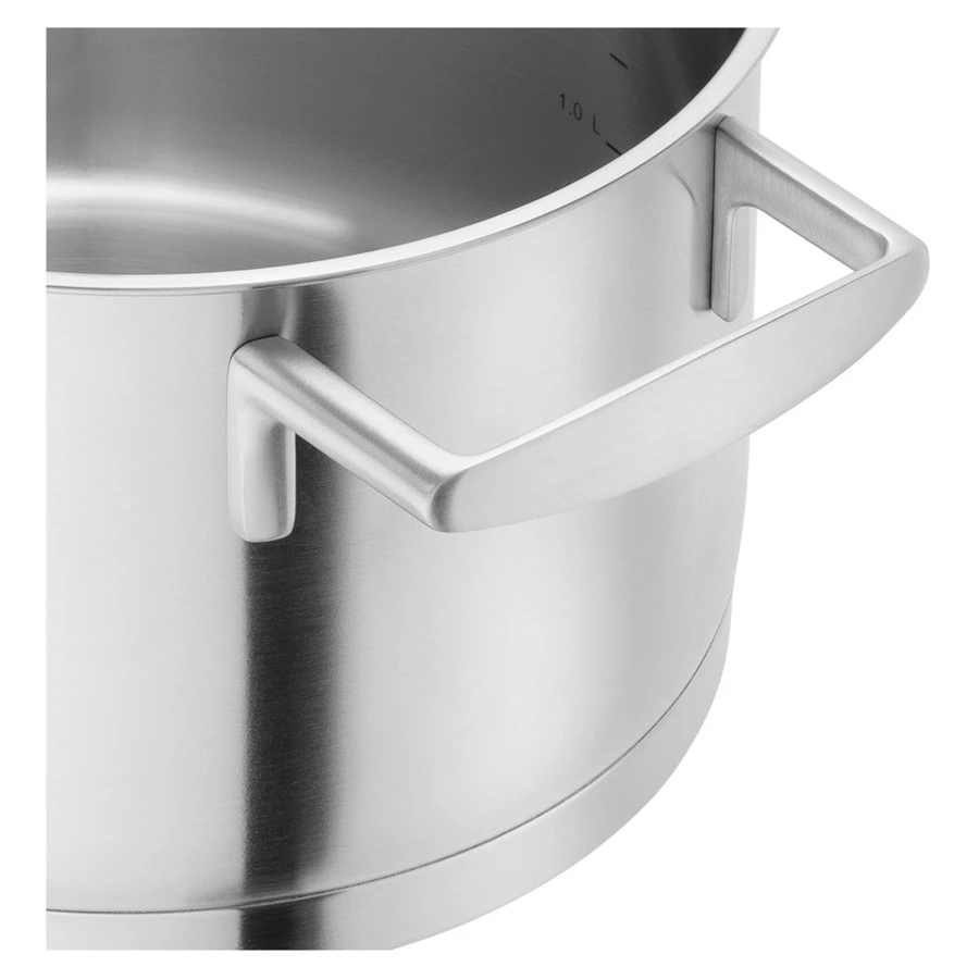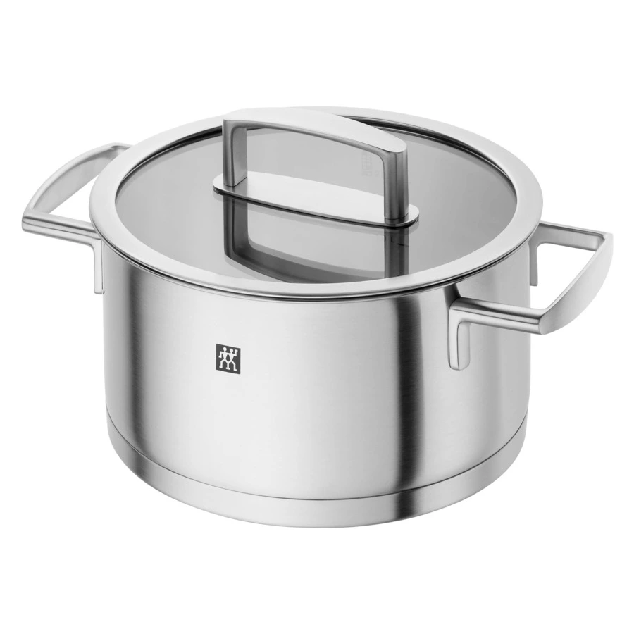Идеальное сочетание дизайна и функциональности: набор посуды ZWILLING Vitality из нержавеющей стали 18/10 с трехслойным дном для равномерного распределения тепла, прохладными ручками, мерной шкалой и совместимостью с индукционными плитами. Подходит для духовки (до 180°C), устойчив к царапинам и легко моется в посудомоечной машине.