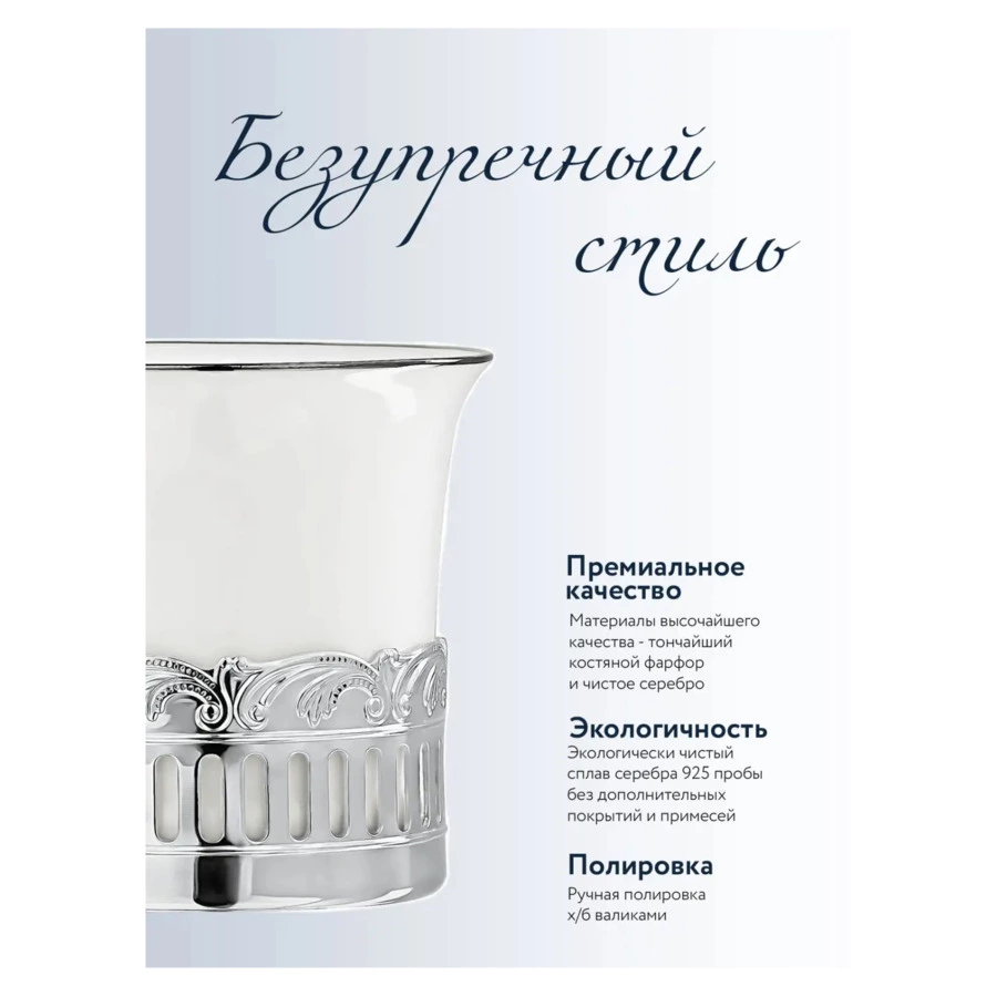 СЕРЕБРО&ФАРФОР – эксклюзивная коллекция Фабрики серебра «АргентА», созданная совместно с Императорским фарфоровым заводом. В основу дизайна коллекции легла красота природы, которая в сочетании с многовековыми традициями русских мастеров приобрела новый притягательный смысл, элегантность и завораживающую грацию. Чайные и кофейные сервизы из тончайшего костяного фарфора в изысканном серебряном обрамлении поражают своей красотой и высокой детализацией.
