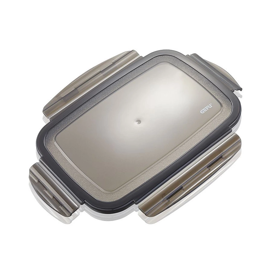 Пластиковая крышка закрывается плотными замочками-защелками.