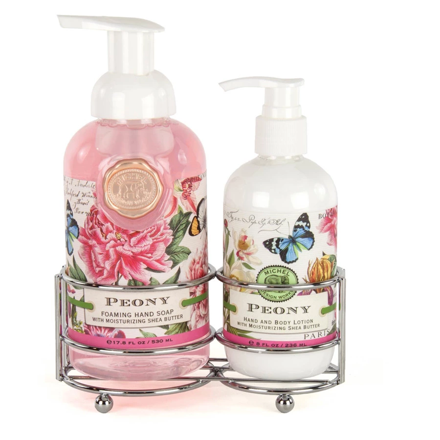 Дуэт воздушного мыла-пенки и питательного лосьона для рук и тела на изящной хромированной подставке идеален как в ванной, так и на кухне. В составе масла Ши и натуральные смягчающие ингредиенты. Мыло-пенка 530 мл, крем для рук 236 мл.