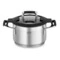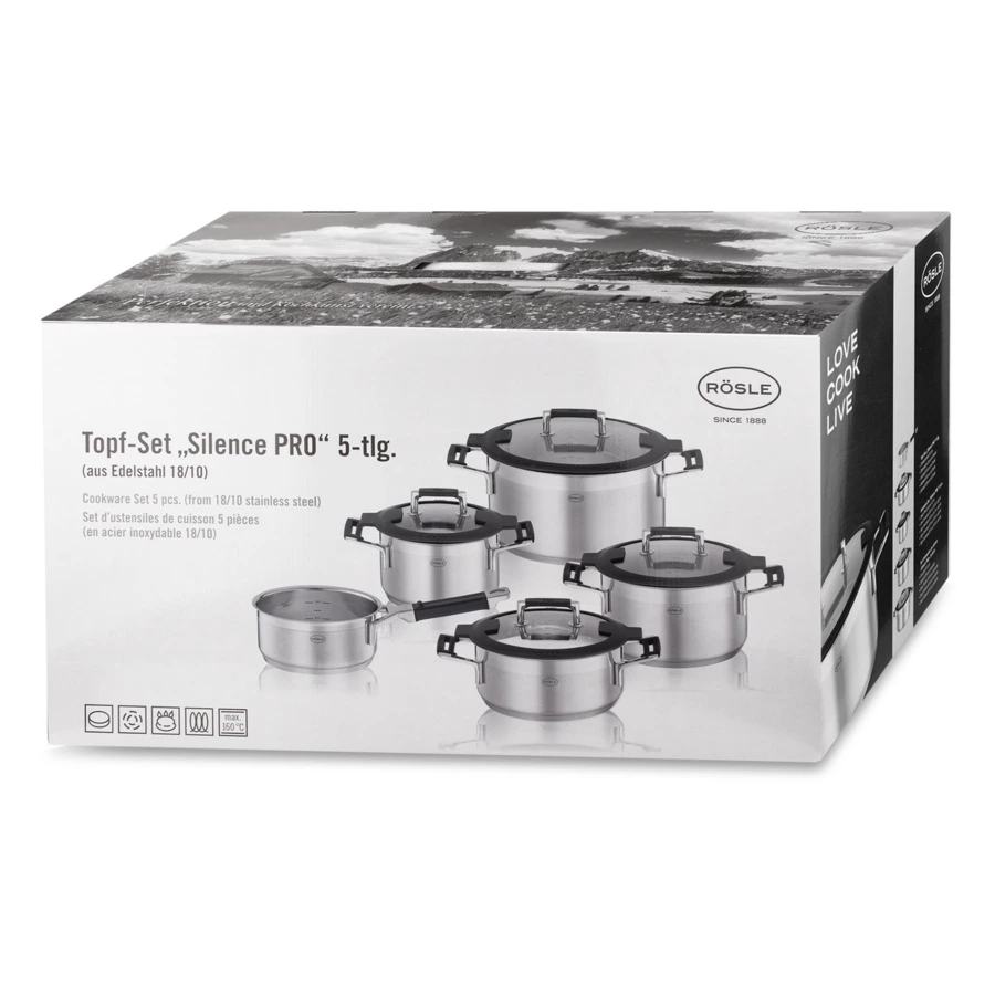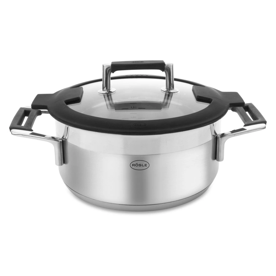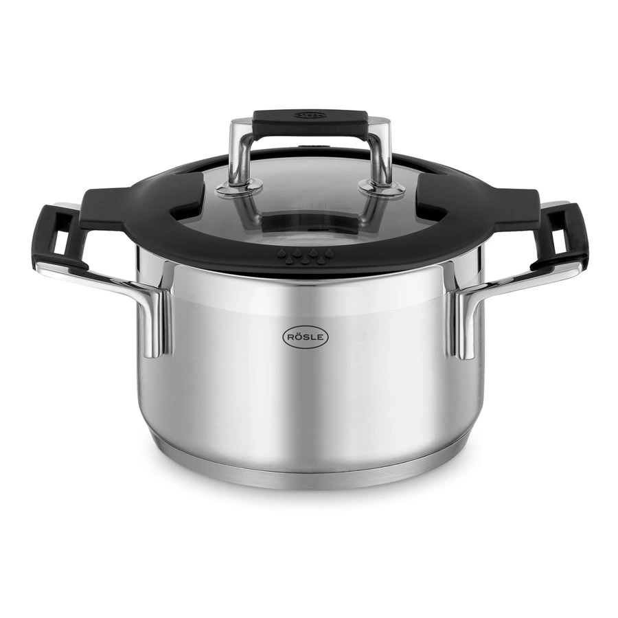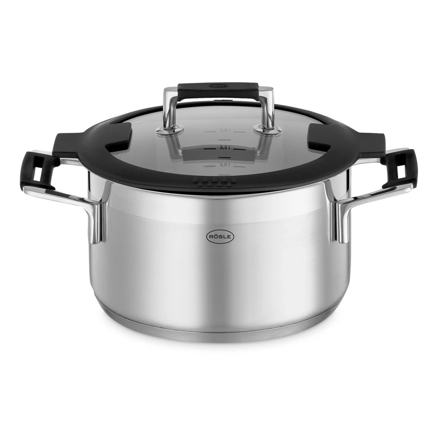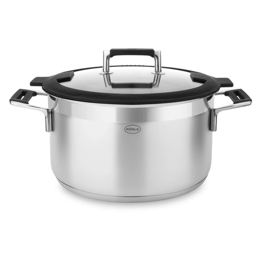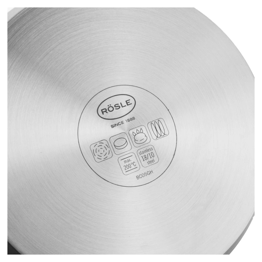 Станьте профессионалом на своей кухне вместе с коллекцией посуды Silence PRO от немецкого бренда Roesle! Изделия серии изготовлены из нержавеющей стали – безопасного и гигиеничного материала, устойчивого к запахам. Дно толщиной 5 мм, выполненное в виде сэндвича с алюминиевым сердечником, равномерно распределяет тепло. Наличие мерной шкалы облегчает приготовление. Специальная конструкция крышки позволяет удобно и аккуратно сливать лишнюю жидкость из кастрюли. Силиконовые накладки защищают от сильного нагрева ручки и край крышки. Теперь не нужно думать куда положить крышку – аксессуар можно закрепить на ручку сбоку. Встроенное приспособление для отвода конденсата гарантирует отсутствие капель на варочной поверхности. Можно использовать на всех типах плит, включая индукционную.