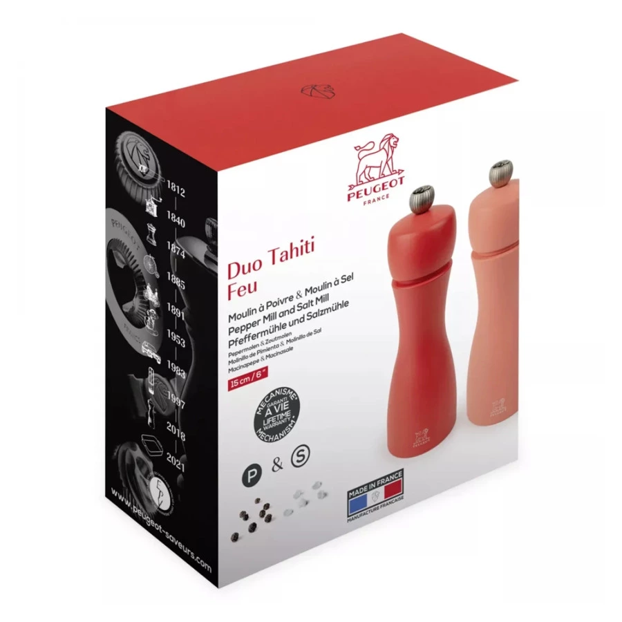Набор мельниц для соли и перца Peugeot Tahity, 15 см, красно-оранжевый, дерево, 00010764469
