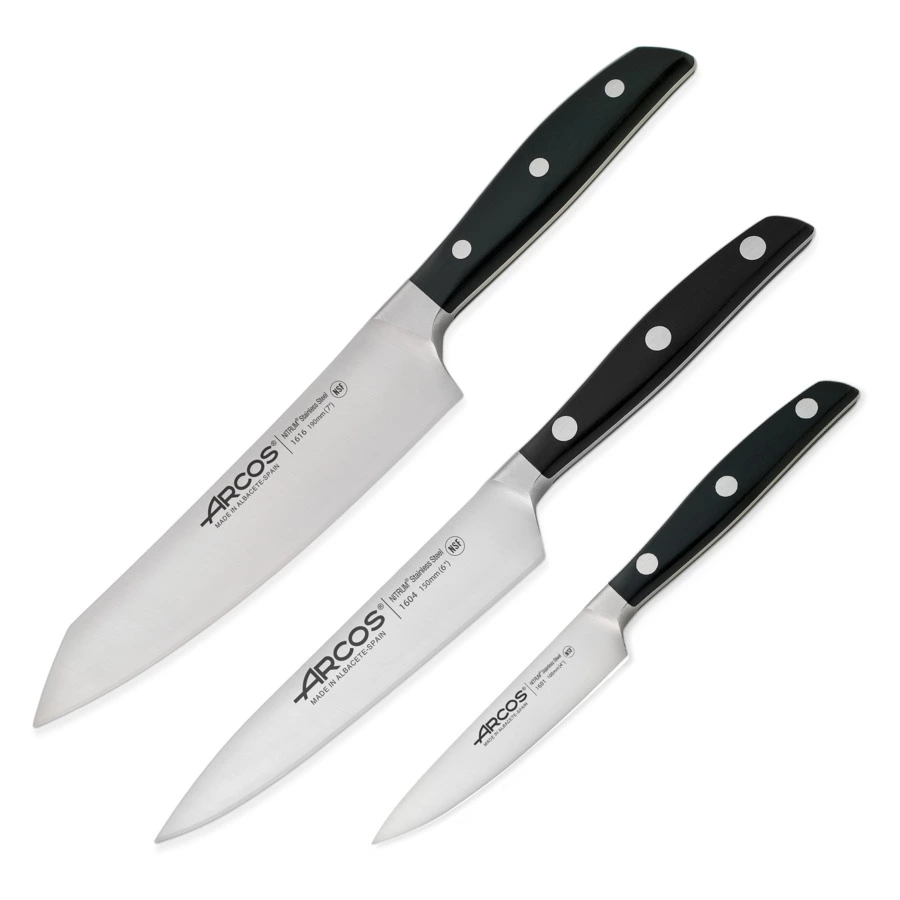 Серия Manhattan испанского бренда Arcos отвечает самым высоким требованиям профессионального пользователя, сочетая в себе прочность и высокую производительность. Ножи, выкованные из цельного куска нержавеющей стали NITRUM®, обладают большой твердостью, отличной режущей способностью и повышенной прочностью кромки. Лезвия инструментов обрабатываются по фирменной технологии, получившей название Silk Edge® —