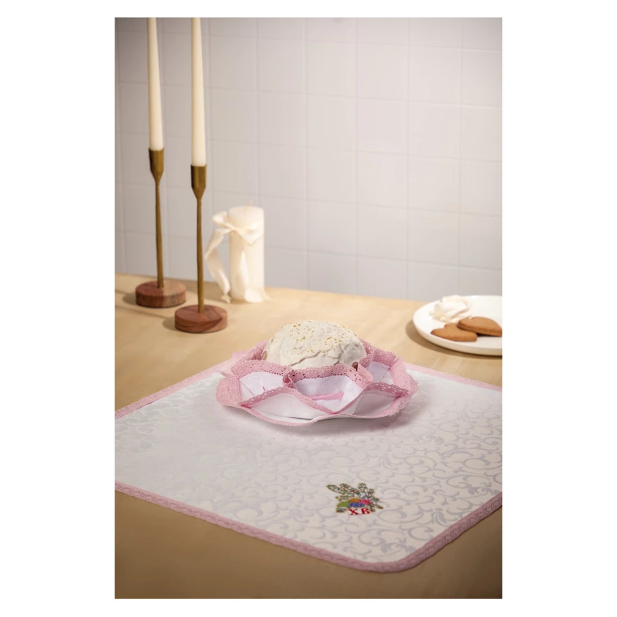 Пасхальный набор от WILLIAMS OLIVER станет прекрасным дополнением сервировки праздничного стола. Изделия сшиты из прочного жаккардового полотна с затейливым тканым узором, по краю обработаны плетеной кружевной тесьмой голубого, зеленого или розового оттенка. Квадратная салфетка украшена искусной яркой вышивкой с традиционной символикой. Круглая трехслойная куличница имеет оригинальную конструкцию. В некоторых местах по окружности слои скреплены между собой, а в верхний продета ленточка. Если ее стянуть, края приподнимутся, образуя своего рода корзинку для кулича с кармашками для крашеных яиц.