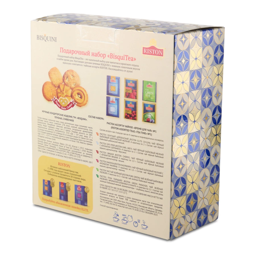 Набор печенья сливочного Bisquini с чаем Riston 200г, 00010756208