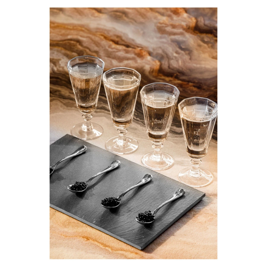 Рюмки с тюльпанообразными гранёными чашами на коротких ножках воплощают традиции XIX века, когда лафитники вошли в обиход, и инновационные технологии стеклообработки, позволяющие придавать хрустальной посуде особое изящество. Безупречная прозрачность, характерный звон, тонкая резьба — продукция белорусских мастеров впечатляет своей изысканностью и элегантностью.