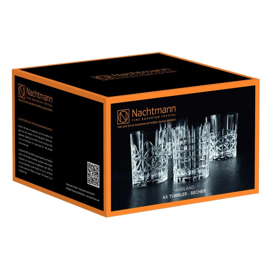 Коллекция барной посуды Highland от немецкого бренда Nachtmann создана для сервировки напитков премиум-класса: от виски до лонг-дринков и коктейлей. «Хайленд» является неотъемлемой частью самых престижных баров, клубов и ресторанов мира. Дизайн линейки умело сочетает в себе ностальгическую атмосферу, гламур и минимализм. Чистые, чёткие линии изделий подчёркивают сильный характер серии. Классически деликатный, но яркий рисунок огранки создаёт достойное обрамление для её содержимого. Массивное дно и глубокая вырубка формируют завораживающую игру света, придавая напиткам эффектную искристость.