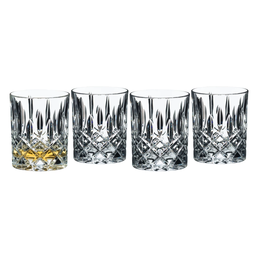 Набор из четырех тонких хрустальных стаканов, которые прекрасно подойдут для изысканного виски. Стаканы произведены машинным способом.