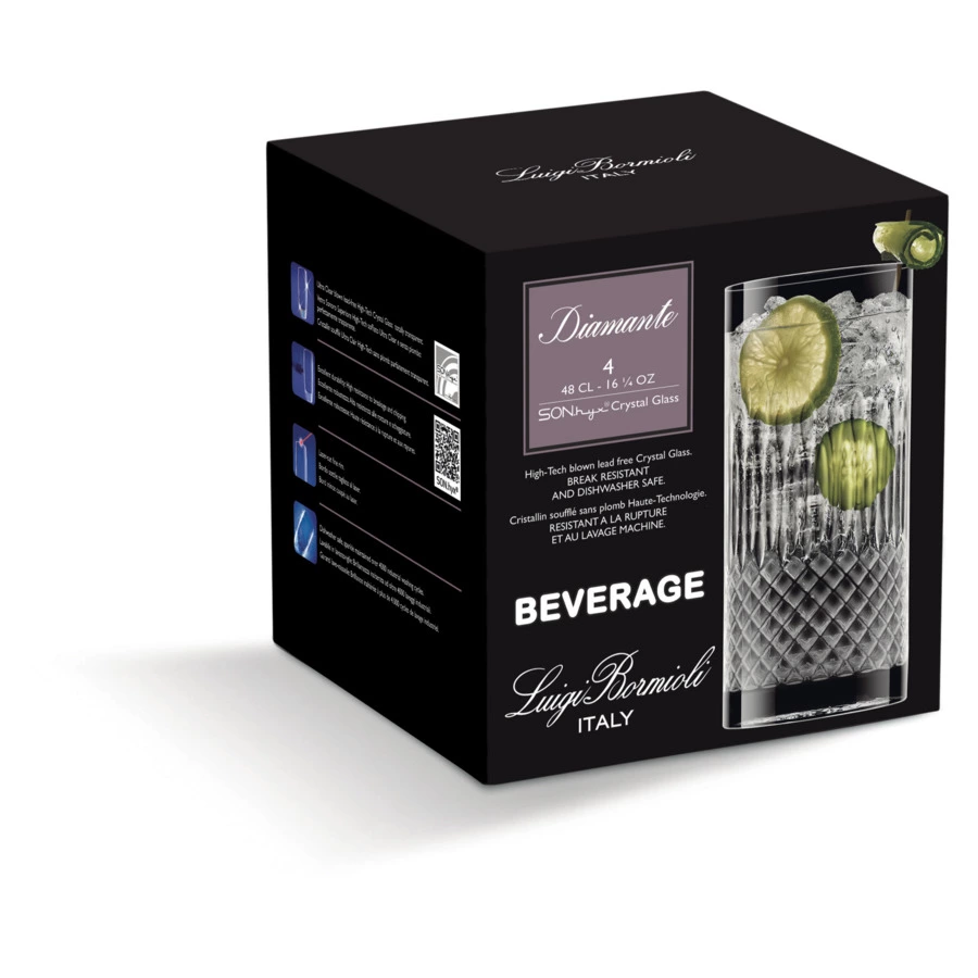 Стекло SON-HYX — уникальная разработка Luigi Bormiolli. Коллекция выполнена из хрустального стекла на основе минерального сырья. Такой материал обладает особым набором характеристик, в число которых входит механическая прочность и 100 %-ая прозрачность.