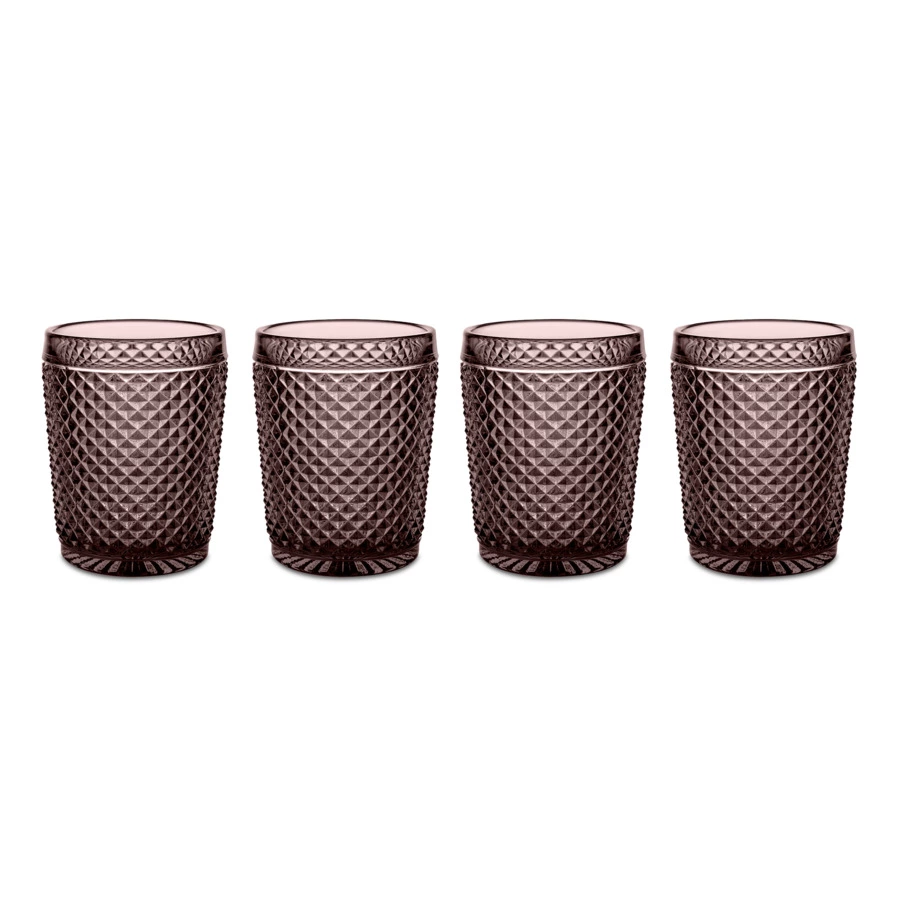 Стаканы для воды «Бикош» – эффектная посуда от бренда Vista Alegre. Дизайнеры марки соединили привычный силуэт с тонированным розовым стеклом и старинной шипованной гравировкой. В результате получился уникальный предмет, в котором уравновешены практичность, презентабельность и винтажный внешний вид. Передовые машинные технологии, применяемые на португальском предприятии, позволяют изготавливать износостойкие и доступные широкому кругу изделия, не уступающие по эстетике и изяществу посуде ручной огранки.