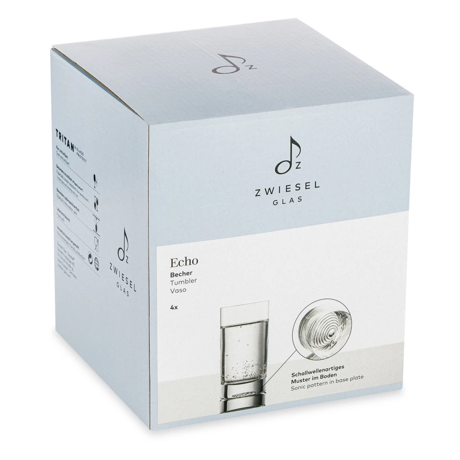 Коллекция столовой посуды «Эхо» от немецкого бренда Zwiesel Glas выполнена в минималистичном дизайне. Набор стаканов для воды олицетворяет простоту и элегантность. Изделия объёмом 314 мл изготовлены из высокопрочного хрустального стекла Tritan, обладающего повышенной износостойкостью и безупречной прозрачностью. Фактурный волнообразный рисунок на дне предмета становится утонченным акцентом в этом сдержанном дизайне. Независимо от напитка – будь то газированная вода, освежающий лимонад с кубиками льда или любимый коктейль – каждый глоток из этого классического цилиндрического стакана принесет наслаждение.