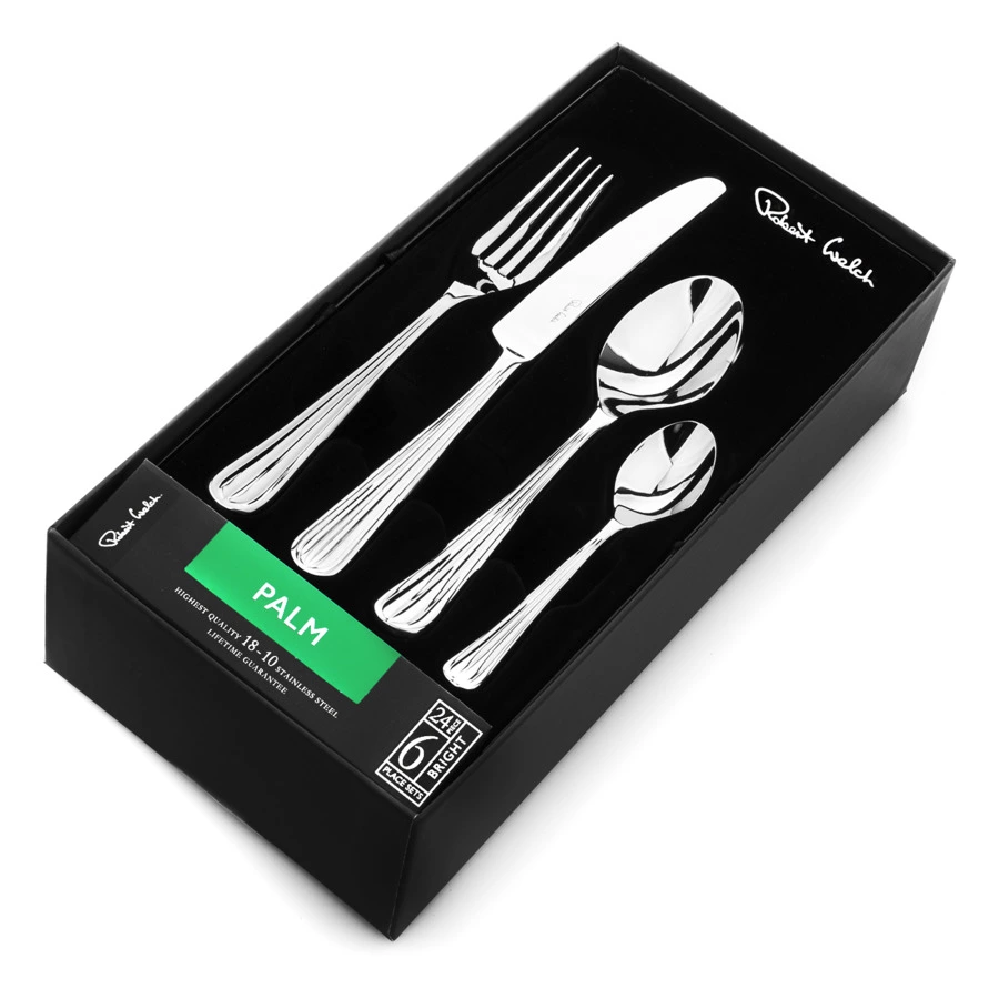 Набор столовых приборов серии Palm Bright от известного английского дизайнера Роберта Уэлча — это настоящее произведение авторского мастерства. Каждый предмет коллекции изготовлен из нержавеющей стали 18/10, содержащей хром и никель. Эти элементы обеспечивают долговечность и сохранение внешнего вида.