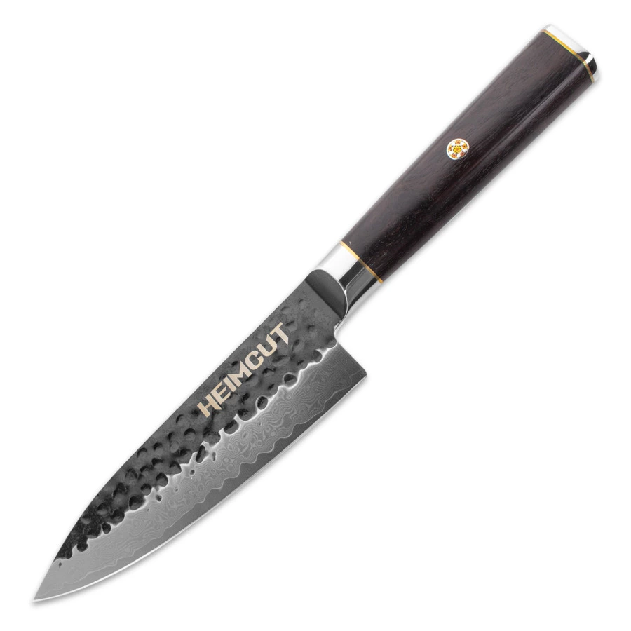 Кухонные ножи российского бренда HEIMCUT сочетают в себе многовековые ножевые традиции с новейшими технологиями. Используя современные материалы и методы обработки металлов, компания производит изделия с лучшим соотношением «цена-качество». Лезвия ножей изготовлены из японской стали VG-10. Материал с высоким содержанием углерода устойчив к коррозии, хорошо поддается закалке и обладает отличной стойкостью кромки. Дамасская сталь, состоящая из 67 слоев, обеспечивает повышенную прочность изделий. Оригинальный узор, проявившийся после кислотного травления клинка, восхищает своим уникальным рисунком. Заточка под углом 15° гарантирует чистый и точный срез. Эргономичные формы рукоятей обеспечивают надежный захват, позволяя готовить легко и комфортно. Ручки, выполненные из ценных пород дерева и стеклотекстолита G-10, придают ножам стильный внешний вид.