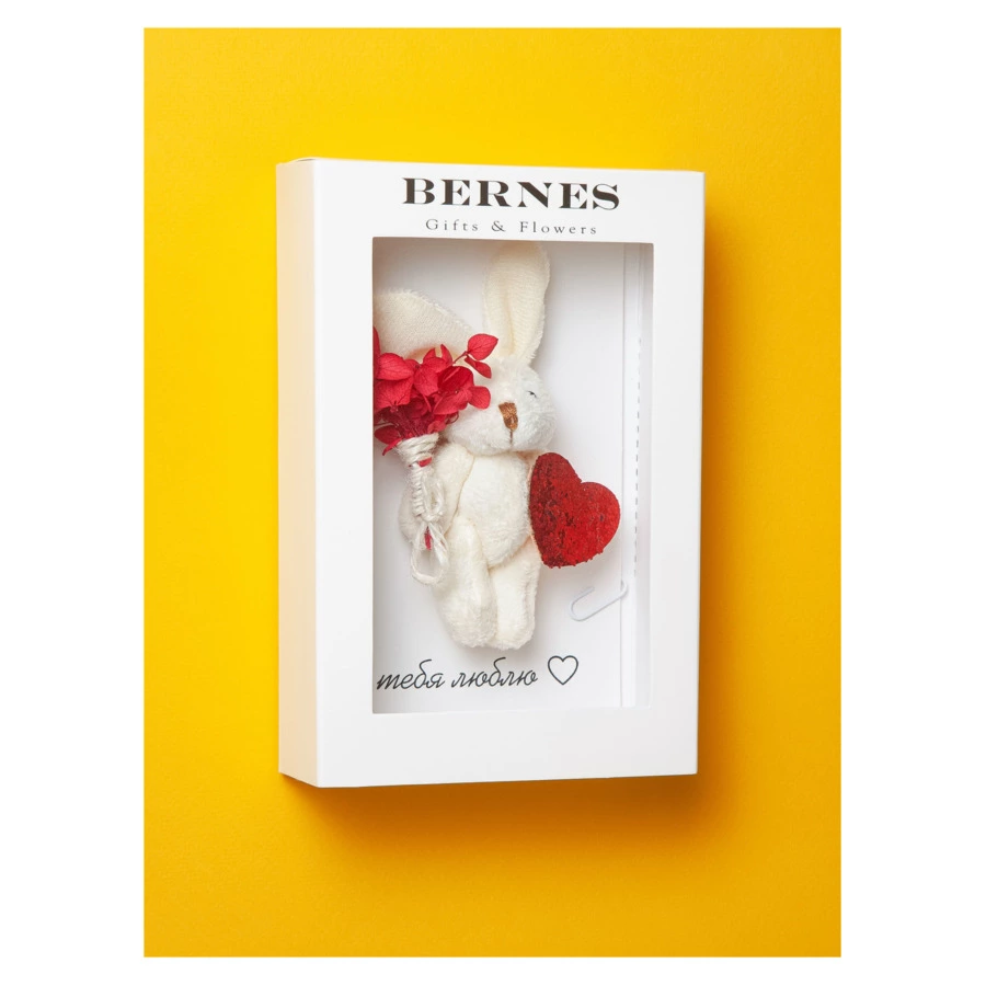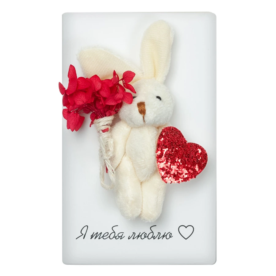 Открытка Bernes Зайка Я Тебя Люблю 11х16,7 см, бумага, сухоцветы, белая, п/к, 00010743040