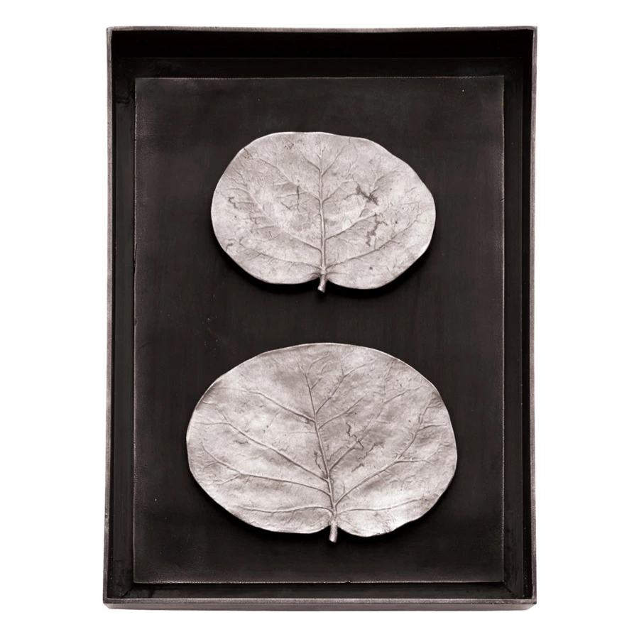 Панно из коллекции «Ботаника» американского бренда Michael Aram – стильное украшение, которое добавит интерьеру особый шарм. Композиция представляет собой расположенные на чёрном фоне крупные листья, выполненные из оксидированного алюминия и никеля. Мастерам удалось воссоздать естественную структуру с мельчайшими прожилками, воплотить в металле ощущение свежести и хрупкости.