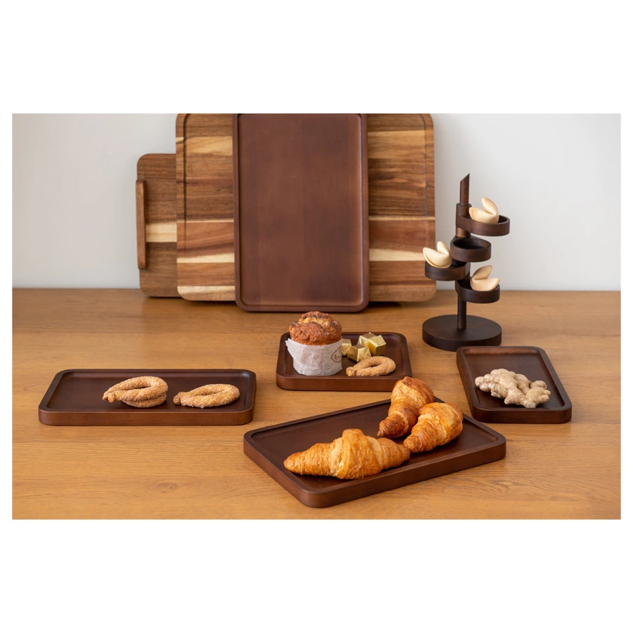 Поднос Bernt – настоящее украшение любой сервировки и стильный акцент интерьера. Изделие из натуральной древесины ореха отличается презентабельным внешним видом, экологичностью, высокой прочностью и устойчивостью к износу. Края подноса немного возвышаются над основанием, образуя специальные бортики, которые надежно фиксируют продукты внутри и делают дизайн более привлекательным. Аксессуар прекрасно вписывается в различные стилевые решения кухни и столовой.
