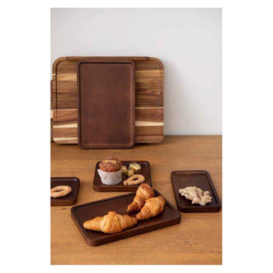 Поднос Bernt – настоящее украшение любой сервировки и стильный акцент интерьера. Изделие из натуральной древесины ореха отличается презентабельным внешним видом, экологичностью, высокой прочностью и устойчивостью к износу. Края подноса немного возвышаются над основанием, образуя специальные бортики, которые надежно фиксируют продукты внутри и делают дизайн более привлекательным. Аксессуар прекрасно вписывается в различные стилевые решения кухни и столовой.